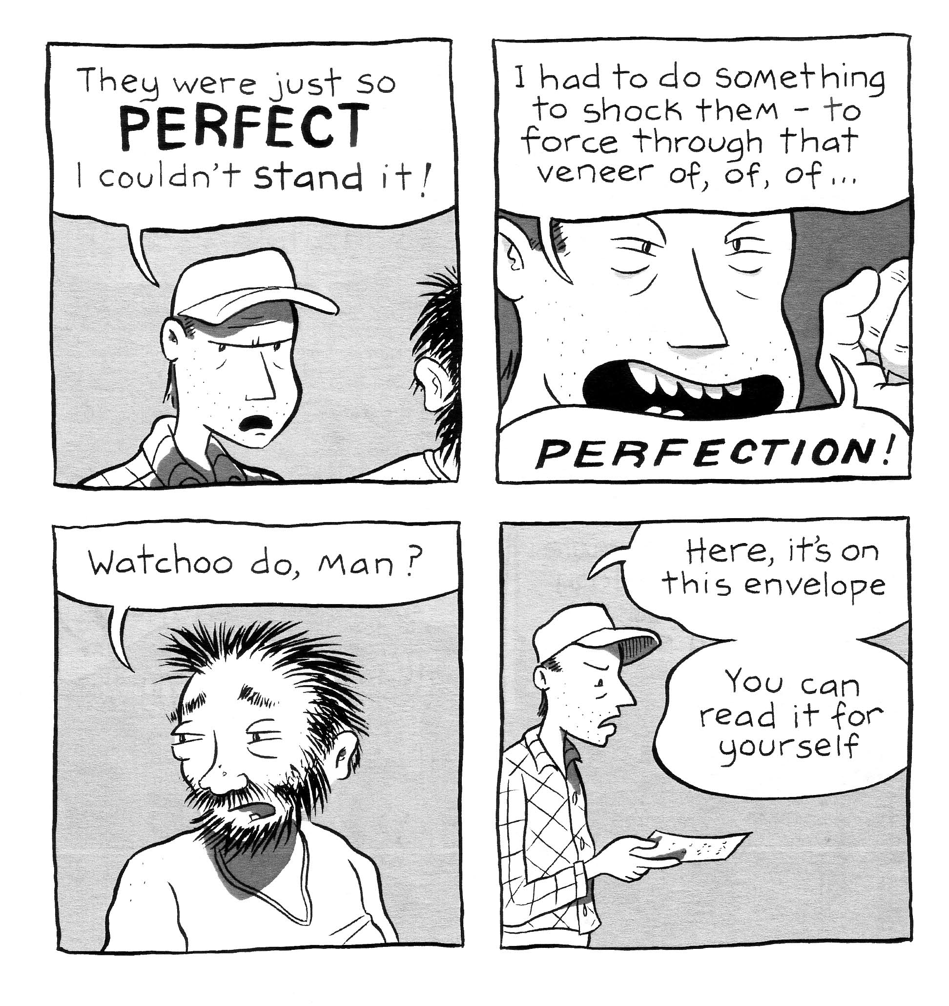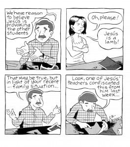For those of you who didn’t read the review for #1, this series is based on J.T.’s interpretation of letters and scraps of paper that were found by himself and/or friends that lack all context. This time around there’s a heartbroken letter from somebody mourning a break-up, a note that looks like it came from a playground, another note from a child (one can hope, anyway) requesting more pizza in the cafeteria, and an angry note found on a car. This time around J.T. connected them all into one story which, as a work of fiction, worked out just fine. It’s a little difficult to see all these things going together in real life, but he more or less made it work. I do love how he prints that actual letters, just to show that he is working from real stuff and not just making it all up. Either that or he’s skilled at changing handwriting styles or using friends to write them, but even I’m not that cynical. Anyway, as this all comes together the stories include the woman (dumper) talking crap about the guy (dumpee) after his death, her kid getting into trouble at school (although the note for this section didn’t have a lot to do with the actual comic), another kid writing that letter about the pizza, and finally her seeing that note on her car. The ending certainly made plenty of sense after all the events of her day, and as a complete comic it was pretty damned good and oddly coherent, which this review probably isn’t due to lack of sleep, so apologies for that. Hey, if you wanted coherency in reviews you probably wouldn’t stick around this site very long anyway, am I right? $5
