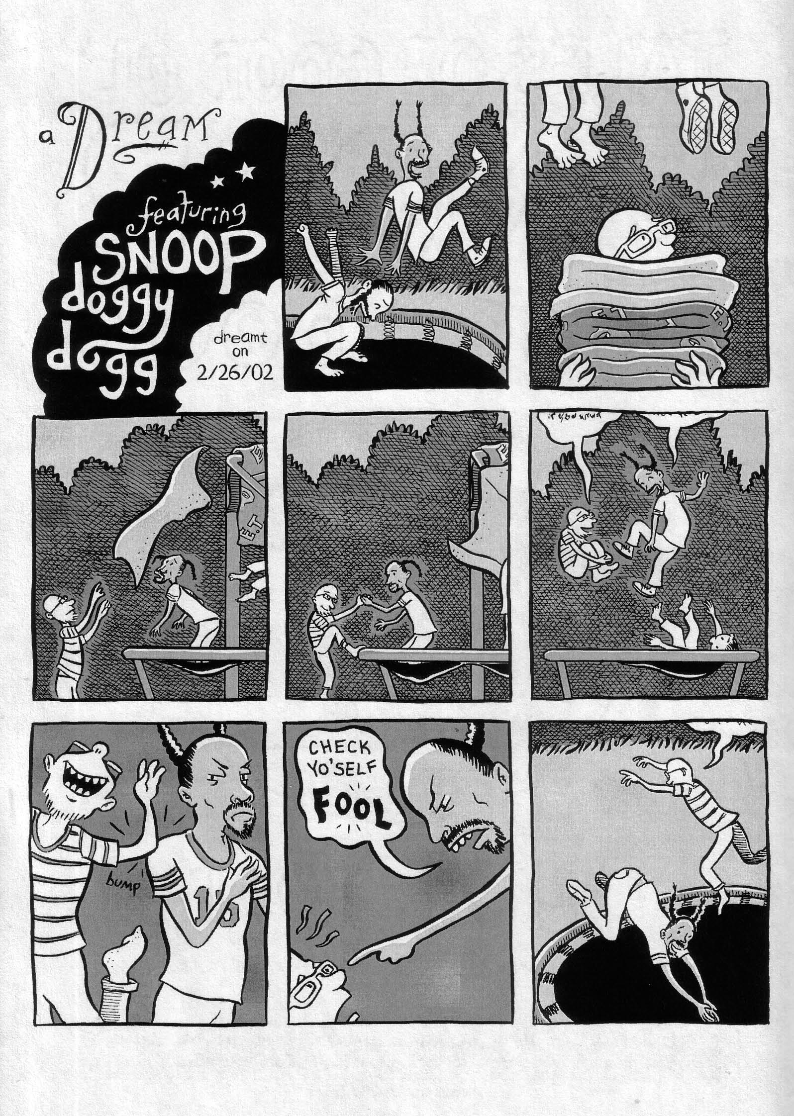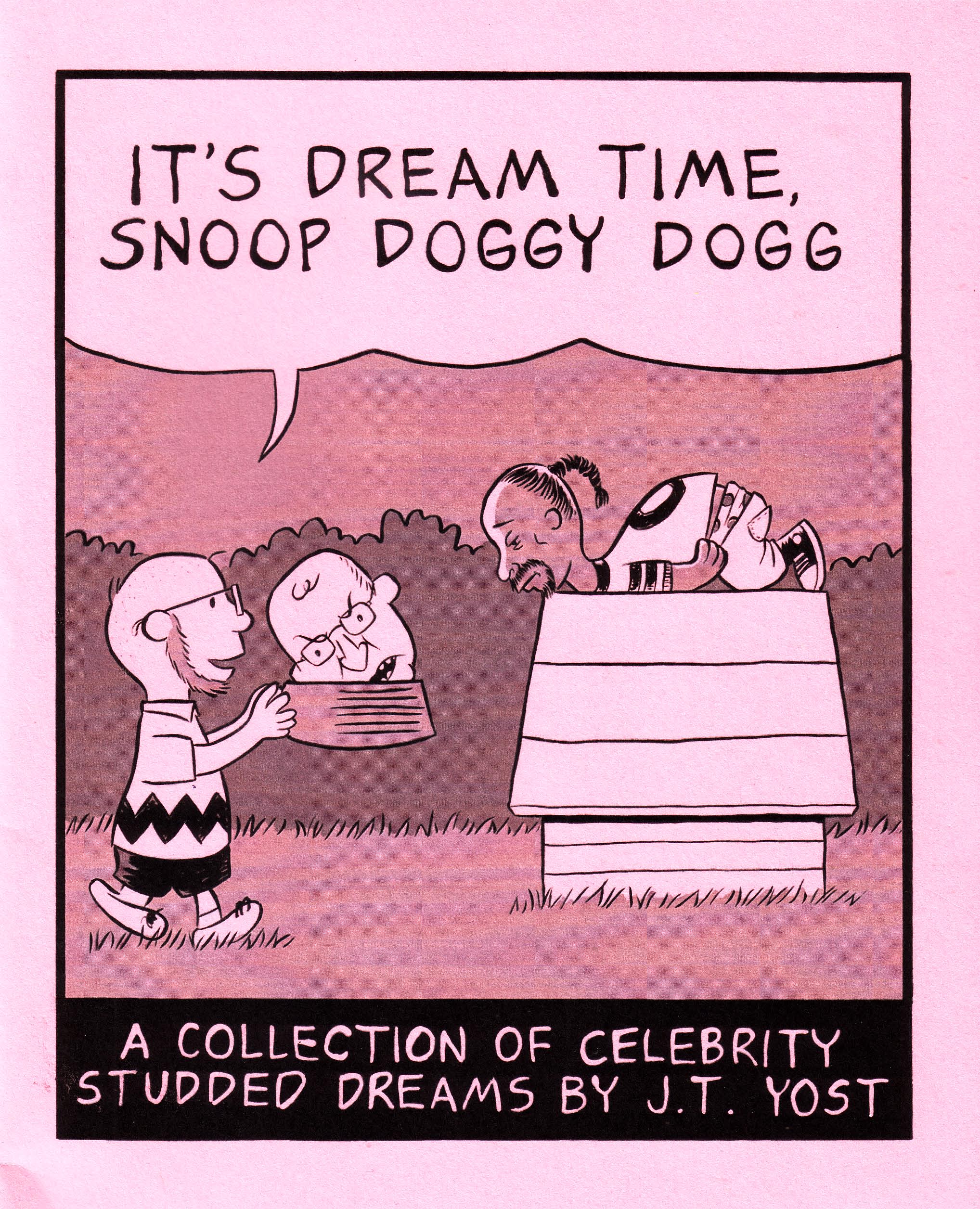 I’ll be honest with you: after seeing that cover and that title, this would have had to be a pretty lousy book to get me to hate it, and this is not a lousy book. Perhaps you could be more objective about this than me, in which case there are always openings in the (not at all) lucrative field of rambling about comics. Make your own website, it’s easy! Anyway, this comic mostly has dreams involving Snoop with a few real bits thrown in. The dream stories include Snoop and J.T. on a trampoline, Snoop walking into J.T.’s store and asking about the music that’s playing and J.T. signing up for a painting class taught by Snoop. The actual story involves J.T. making friends with a tough guy in his high school (?) days after finding out that they both could draw and getting introduced to Snoop’s music at a party. There’s a bit more to it than that, but hey, why give it away? You can tell from that cover if you’re interested, although if you’re not I regret your lack of appreciation in things that are fantastic. $3