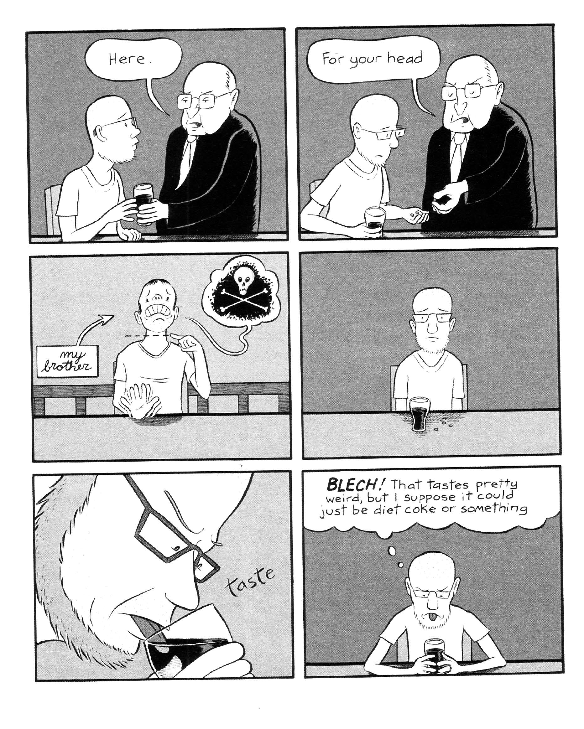 As always with gigantic anthology collections like this, I like to make it easy on the reader. See that list of contributors in the tags? How many of your favorites do you see in there? Probably quite a few, huh? Then what’s left to think about? For the rest of you, or if you’re just trying to kill time at work, now I’ll say some stuff, then we can both go about our days. Hm, that seems like a grim way to sum up reviewing. Anyway! This is a collection of stories from people who are at their lowest points in life, so if you’re going into this expecting a barrel of laughs, you’ll be disappointed. There are some laughs, sure, as laughter can be the only way to get through some truly horrific times, but mostly it’s just sad. My biggest fear going into this, honestly, was seeing the worst parts of the lives of some of my favorite artists, but outside of a few of them, the artists were drawing the tales of people who submitted their stories anonymously. No, I’m not going to reveal which artists told their own stories; if you’re that curious about them get your own copy. There are also websites in the back so that anybody going through a similar issue in their own lives can get some help, so if you’re seeing too much of yourself in any of these stories, please do so. Not that you need to hear it from me, but I thought I’d throw it out there, because who knows when it’ll start seeming like good advice. There are roughly 40 stories in here, so I’m not going to go through them one by one, but I’ll give you some “highlights.” Subjects deal with reaching out for the last time and having it work out, the first time taking crack, getting beat up by cops (this one pops up more than a few times, which sadly isn’t shocking), using whiskey in a bong, getting addicted to voyeurism, a series of bottoms (a recurring theme was that there was rarely just one lowest point), having an imaginary dog, and very, very many slow descents to the bottom. It’s grim stuff, but it can also show you that there’s hope in even the worst times, as all of these people are still here to tell their stories. Get help if you need it, and give this comic a shot to see that however bad your situation is, there are people out there who have gone through something similar. $15