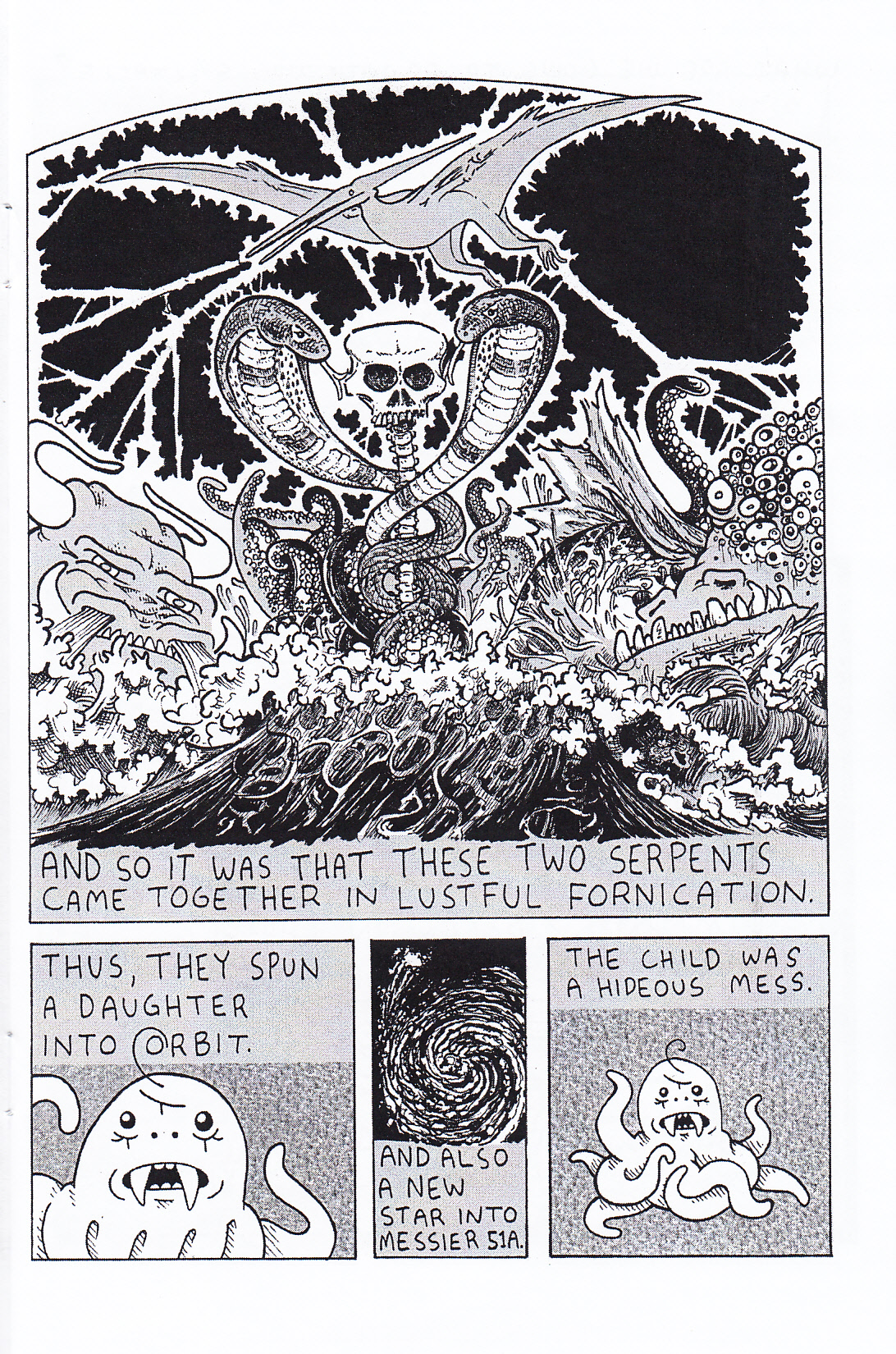 Have you ever wondered what a sea serpent zoning commission would look like? No? That’s odd, neither have I. Well, lucky for us James has thought of this and then put it into a comic. The story here is that this commission regulates where sea monsters get to live in the sea and assigns them territory. Things go smoothly for 800 years or so, but finally two monsters get together and have a baby, so its territory must be established. The sheer variety of the monsters keeps things interesting, but even so it probably goes on for a few pages too long. There are also four very strange pages dealing with the Barnacle Brothers and their conversations. If you love barnacles, that story is for you. So as a package this is OK, and moves up to pretty good depending on your love for different types of monsters. I loved the fact that he has a table of contents with page numbers for the two stories, but then mentions that there are no page numbers on the actual pages anyway. Yes, I am exactly enough of a dork to get a good laugh out of something like that. It’s been a few years since I’ve seen a book from James and it looks like he has a good selection of new comics available, and he was nice enough to send a few of them along so I can get a better handle on his new stuff. Oh, and in case it wasn’t clear, there are several funny bits in here, it’s just that I thought the main story dragged a bit. Just one man’s opinion, as always. $5