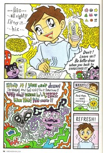 Is the world ready for an anthology based on allotment gardening? Well, considering the fact that the world doesn’t seem to be ready for small press comics in general and it seems like a bit of a moot point, doesn’t it? Still, those of you reading this are probably inclined to give it a try, so don’t run away based on what seems like boring subject matter. The great thing about these anthologies is the wide range of colors, styles and cultural backgrounds, so at the very least you’re bound to find at least parts of this book gorgeous. That being said, honestly, to me the subject matter was often a little dull. Granted, this is a wildly creative group of people who took the subject into unexpected areas, but chunks of it didn’t do a lot for me. Highlights include Ruta Briede’s painted piece about a growing garden gnome, Sabine Moore’s hungry carrot, Malin Biller’s heartbreaking tale of family life contrasted with the happiness of vacations, Yoshi’s Garden Gnome Liberation Front, Irkus Zeberio and Hitler’s doubles, James Turek with some useful advice for long-distance murdering, and Lai Tat Tat Wing’s cautionary tale of the future. The highlight of the comic was again the manga portion by Hironori Kikucki, as he drifted off while contemplating the subject matter and came up with something completely different and fantastic. I’m guessing the translating errors are unintentional, but they add an extra layer of funny to the whole thing. According to his bio he mostly does stories for teenagers, but he should really consider branching out into the small press world where he can get creative. All told it’s far from an awful anthology, but I wouldn’t list it as one of the greats either. If you’re looking to explore the international world of comics this is a great place to get a number of names and contact information, if you’re already a regular reader of this series this is the one I’ve seen so far that you could maybe get away with skipping. Then again, it’s only $8 for 111 colorful pages, so it’s up to you.