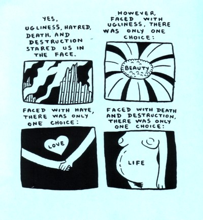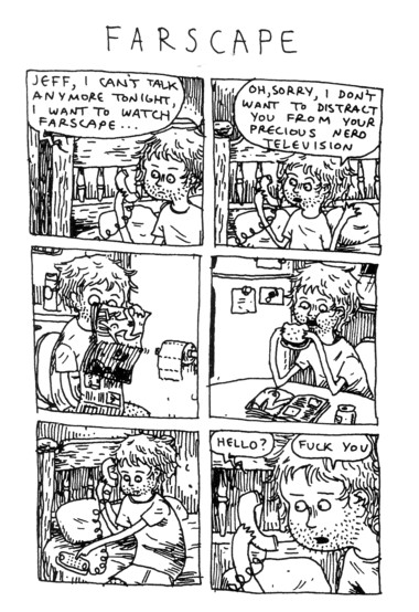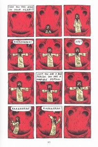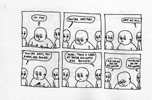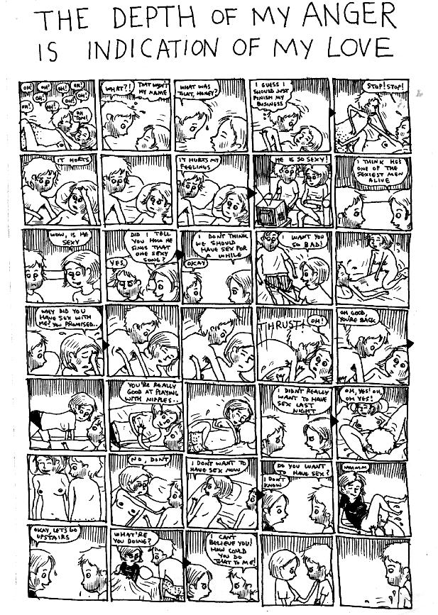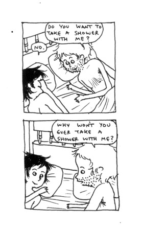 Has everybody out there read Clumsy? If you have, you’ll think this is the funniest book on the planet. If you haven’t, you’ll probably still think it’s a funny, but you won’t get a lot of the jokes. So, go read Clumsy and then come back to this, otherwise you’ll ruin it. OK? All done? Well, in this one Jeffrey says that he realized that he was too sensitive and pathetic in Clumsy so he did this book to fix himself. In this book he treats his girlfriend like shit, hits on other women, goes to bars and constantly thinks about sex. If you don’t think that’s funny, I’m not sure why you lied to yourself and me and refused to read Clumsy, but there you have it. It’s $4, check out the website up there for ordering information and plenty of samples from Jeffrey and three other fantastic Chicago artists. Paul Hornschemeier, John Hankiewicz and Anders Nillsen, in case you were wondering, and I know you just wanted me to type them all to see if I could spell them correctly. By the way, once I get all my comics out of storage I’m going to re-scan all these images so you can read them. Seriously!