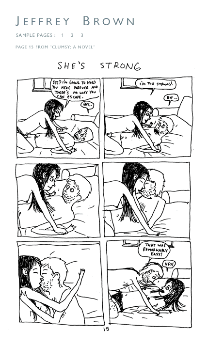 April 22, 2010This is the kind of book you read and then immediately wonder why everybody in the world hasn’t already read it. People should be passing this out at street corners. At the very least this should be handed out to couples as they go into group therapy sessions. Clumsy is the story of a relationship of Jeff’s that lasted about a year. The art is minimalistic and looks rushed at first glance, but it’s perfect for the pace of the book. He tells everything about his relationship, no matter how embarrassing. The sex, his doubts and fears (and neuroses), even the break-up conversation. I don’t know why you need my to tell you about this book, as everybody loves it as far as I can tell. James Kochalka and Chris Ware are both quoted on the back and neither of them can find enough good things to say about the guy. This is $10 and you’re not going to find a better book about relationships anywhere. What makes it so great is that it’s not meant as anything other than a recollection of the time he spent with his girlfriend. It never gets preachy or obnoxious, he’s just telling the story of what happened to him in that particular relationship. Buy it and feel blessed to be reading it, also don’t mind the doubts that it’ll probably bring up in your relationships, past and present…