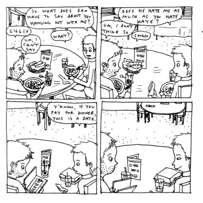 April 22, 2010I think Jeffrey sums it up best in his afterward: “Although based on actual events, this book leaves so much unsaid that you may as well consider it to be fiction”. This is the story of his third significant romance, so if there are any continuity nuts who wondered why I didn’t get to his second girlfriend first on the site… nah, never mind, nobody is that obsessive. As in Clumsy, this starts at the beginning, when a friend tells him about his girlfriend’s new roommate and how they would be good together all the way to the inevitable end of the relationship. At least, I think that’s what happened. Look, if you hate spoilers I’m going to let loose here, so avert your dainty eyes. The book ends with his girlfriend (no idea if they were still dating at that point though) coming for what seems to be a happy visit, then it ends, and in the afterward it seems pretty clear that it all blew up, as they’re not on speaking terms. This sort of thing always mystifies me, because why dig into all the gory details about a relationship and then leave so many things so nebulous? Don’t get me wrong here, this is Jeffrey Brown we’re talking about and about 95% of the book is his typical wonderfulness, dealing with the quiet moments in a relationship that fly right by most people. It’s invaluable that all this stuff is catalogued here. The thing is, it’s hard to feel a ton of sympathy for the guy. When he starts dating someone he gets insanely jealous by the littlest things and can’t seem to go more than a few hours without talking to his girlfriend. This, naturally, smothers the girl, who slowly leaves, as even the great guy that Jeffrey mostly seems to be can’t make up for the complete lack of independence. I have no idea if this is still going on with the guy (this was a story about 2002, published in 2005), but if it is, well, back off a bit. This is, of course, coming from somebody who has no business in the world giving relationship advice to another human being, so please take that with the appropriate bucket of salt. All in all, if you like his other stuff (and who doesn’t?) then you’ll probably love this too. It’s just when I get that voyeuristic peek in the window of his life, I want to see all that happened and not be left wondering about some of the most crucial bits. $12