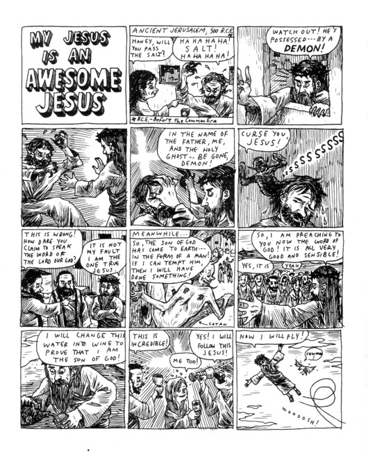 September 17, 2013I’ll confess, I was a little worried about this one. “An autobiographical meditation on fatherhood and faith”? Blech. Most of the comics I’ve seen about fatherhood seem to come from the perspective that these people have recently discovered parenting and small children, so the slightest details about each will be fascinating to the reader. Or you may recognize it from its real world equivalent: friends who have recently had children thinking that you want to hear every single “cute” thing that their child has said and done, no matter how mundane. Why yes, I am remarkably cynical about such things, why do you ask? But hey, this is still Jeffrey Brown, so there’s plenty of entertaining stuff in here. This is mostly about Jeffrey growing up, his early days dealing with faith (his father was a minister), and how he gradually just stopped buying into it. This always seems to happen after comparative religions classes, which makes me wonder why those obnoxious fundie groups haven’t tried to stamp them out yet. After all, it doesn’t help their case when kids can learn that whole sections of the bible were copied from various creation myths and stories from older religions. Anyway, this book wanders all over the place, as it also deals with Jeffrey’s relationship to his parents and brothers growing up, how he dealt with being stuck in church on a weekly basis, and his own confusion in how to raise his old kid. After all, he might not want to deal with religion any more, but there’s still the rest of the world to think about. I was a little hazy on his final conclusion on the religion angle, as he did call himself a Christian later in the story, but it seemed like that was only to be friendly to a lady he was chatting with on the street. Who hasn’t been stuck in one of those conversations, where your only options are to lie about your religious affiliation or be doomed to a lecture by a stranger about your choices in life? While this one did seem a bit more scattered than some of his past work, there are still plenty of laughs to be had and truths to be pondered. Not necessarily agreed with, depending on what you believe, but pondered. And if your heart isn’t as hardened to such things as mine is, all kinds of cute moments with his son. This is also in full color, which is such a lovely change of pace that I can pretty much recommend it on that alone. Check it out, think deep thoughts about your own religious choices and parenting decisions! $14.95