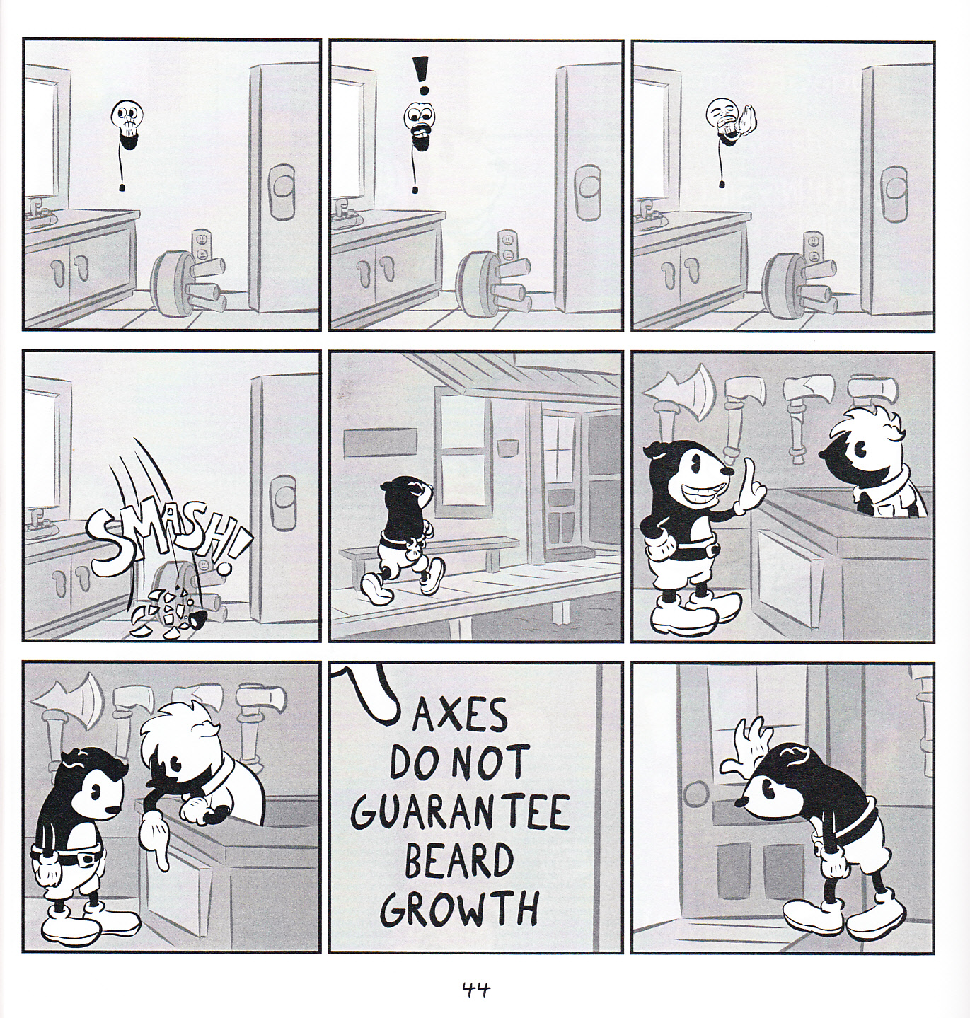 Finally, an anthology all about beards! Shame on you, comic universe, for not making this happen up until now. Or if you did and I just missed it, well, forget what I just said. You wouldn’t think that the range of possible beard stories would be all that large, but you would be wrong. Steve Seck starts things off with “The Beard’s Beard’s Beard,” which makes perfect sense when you read it. Let’s just say that it’s all about the beard of a famous actor, the home life of this beard, the beard that he married as a “beard” against his homosexuality, and his lover. I couldn’t get past the question of where exactly a female beard would go on an actual female, especially considering its shape, but it’s probably best to leave that alone. Next up is Baldemar Byars with his tale of growing a beard after heading off to college in 1966, including the panicked reactions of his family and the alarming reactions by some of the anarchists on campus at the time. Jonathan Pekin is up next and he answers the timeless question: in a zombie apocalypse, is the apocalypse itself more traumatic than losing a beard? Sango Imai-Hall shows how awesome a bearded woman warrior could be, and Aaron Cockle shows a long philosophical conversation between two bearded men that might confuse you a bit until you get to the payoff, but it’s worth the ride. Jeff Mumm may have the best story in the collection next (although there are many contenders): a silent tale of a guinea pig and his quest for a beard. It’s done in old-timey animation style, with unexpected, arguably unnecessary and hilarious violence all over the place, and I’m not going to ruin a bit of it for you. Mark Thisse wraps it up with his tale of the missing beard of a magician, and he might have the best title in a bunch of good ones. This is made for bearded people, but even people who can’t grow a beard (most ladies and even some men) should appreciate this chance to see how the other half lives. Well, the other 1/10 maybe, as not that many people really grow beards. $6