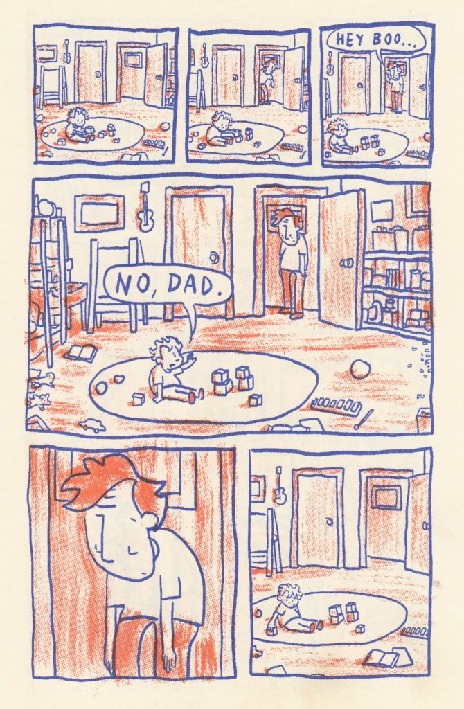 I’ve become a fan of Kyle’s method of taking exactly as many panels as he needs to tell each story (then just starting the next story in the next panel), but boy howdy does it make it tricky for sampling purposes. It’s almost like that’s not his top priority in making his own comic! This is another solid entry in Kyle’s personal story, and I laughed out loud quite a few times in this one, which is always a good sign. Odd, because a good chunk of this is about suicidal thoughts and depression, but there it is. My impression is that he didn’t come close to actually harming himself, but the thoughts were there; his concern was mostly the loss of options for himself in his life as he raised two children with his wife. And turning 40. Both natural things to be thinking! Other subjects in this issue include seeing a new therapist and getting new meds (then quitting said therapist and meds, then getting back together with the therapist and meds), lots of short pieces about aspects of depression, falling into old habits when he finally has a night to himself, his anarchist child, thinking about moving, installing a headlight and putting together a treehouse, noticing gradual improvements in his mood, getting his car broken into (and only having a phone charger and a book on making comics stolen), the instant rage he sees at noticing a Trump bumper sticker, making a damned odd sandwich, and a few more stories I’ll leave as a surprise. It’s another solid issue, and he talked about putting together a “best of” book with pieces from the first 4 issues, so if you missed them, maybe hold out for a bit longer and you can still get all the best bits. But that doesn’t include this issue, so give it a shot!