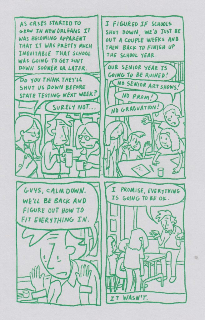 The pandemic comics are finally starting to arrive, and this one covers a few areas that I had no experience with in my particular bubble. Early in-person voting, sure, I know all about that (98% of the people were great, but that 2% who weren’t, whooo boy), but what happened in schools was all hypothetical to me until reading this comic. This one reads more like a regular comic than most of his books, if that makes any sense. Kyle tends to keep his observations short in past issues, but this one started with the first time he heard about the coronavirus, how he dismissed it several times along the way and downplayed the severity of it when it did hit, all taking up maybe the first half of the book. It also showed how he tried to comfort his students, their reactions when they got the news that the school was shutting down (mostly centered around how anxious they were to be able to take their art supplies with them), and a bit about how he handled classes remotely. Other stuff in here is similar to how a lot of us had to deal with things, going from not being sure if it was OK to touch anything to figuring out how it was all about the masks. Other subjects include the oddity of fishing on a random Wednesday afternoon, trying to get some work done while being attacked by his children, going to the doctor for what he was sure was the corona, and dealing with a sudden glut of homemade masks. As we in America are mostly in the clear (this is July 2021, dear readers, so if the Mechagodzilla variant has hit by the time you read this, my apologies), there’s been just enough distance for all of this to be fascinating to me. Your mileage may vary! Maybe you’ve heard more than enough about the virus and want some distance. If so, give this one a while before checking it out. Otherwise, all I can say is that I thoroughly enjoyed it.