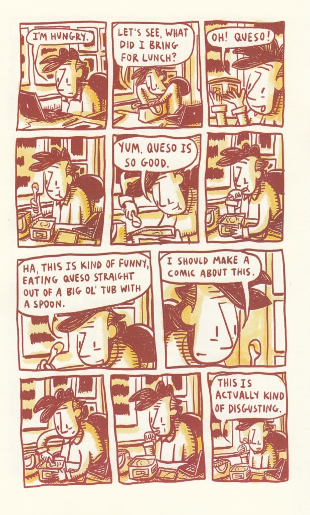 Hey kids, or anybody who has started reading comics in the last few years? Are you interested in the history of mini comics, why they’re such a source of passion for so many people? Well, maybe not in numbers, but in level of interest and dedication in following certain artists? Your answer is this volume. If you have no interest in the history, away with you! This one can be for the old timers. This is a collection of the best of the “Not My Small Diary” anthology, and if you read small press comics in the 90’s and 00’s, you will recognize plenty of these names. In fact, good luck not getting lost in a Google hole or trying to figure out what so many of these people are up to these days. Notable names include (but are not limited to) Jeff Zenick, Dan Zettwoch, Patrick Dean, Raina Telgemeier, Jesse Reklaw, Carrie McNinch, Sam Spina, Roberta Gregory, Kurt Wolfgang… you know what, there are just too damned many names, and they’re all in the tags, so check that part out. If any of those names made you say “hey, I wonder what they’re up to these days” then this book is for you. These are mostly snippets of stories, but they’re all complete by themselves. Sometimes the stories follow a theme, like notable dates or moments in their lives, but really they’re all over the place. If it seems like I’m avoiding getting into specifics, that is entirely the case. If you were around for all these artists when they first started, you’re going to get lost in this instantly. If not, this is an excellent way for you to figure out what the big deal was about these people all along. I guess it’s possible that it’s the nostalgia talking and that people might not connect to these stories now, but screw that. These are tales of human weakness (and occasionally triumph), and those stories are universal and timeless. Most of the original issues of this series are out of print, so this is your best option all around. The book itself is $7.50 if you see Delaine at a convention, but if not $10 should be enough to cover the shipping, and I really can’t recommend this enough. It’s rare for any anthology not to have a weak story or two, but these are all golden.