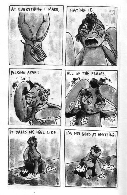 It’s tricky enough to review comics that are essentially visual poems, it’s even trickier to try to pick a sample image from the comic. Still, you can get people interested in a certain poem by a line or two, so maybe it works for comics too. This is a series of images of people, couples and not couples, that L. drew at some point and put together to form a story. Well, sort of a story, as it probably depends on your definition. It hits on all the “high” points of relationships and the effort to enter one: fear of rejection and/or solitude, the inevitable distance created, and secrets, but also the potential of making something better than you could on your own. L.’s choice of images, particularly those of couples who didn’t know that they were being observed (or, if they did, she managed to catch them in some candid moments anyway), really makes this comic, as subtle glances can mean everything. If you stick with comics with a linear story, I suppose you can skip this. If you like a little bit of poetry in your stories, this is right up your alley. If you’re somewhere in between, the visuals in this should bring the fence-sitters in. No idea on the price, but my random guess of the day is $4.