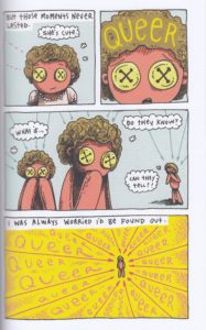 Damn, now that’s how you put together a fantastic anthology. The stories in here are of various lengths, but it gets going with a 20 page story by Eric Orner dealing with his coming to terms with his sexuality, dating a woman in college, having a right wing nut of a father and generally not having much of a source to educate himself about being gay. The social progress this country has gone through in the last five years on this front has been staggering (it’s like the majority of the country realized all at once that they were being homophobic assholes and all decided to stop and pretend like it never happened), but it’s stories like Eric’s that remind the youngsters that there were very few options when you were growing up gay in the 70’s and 80’s. The closet was a lifesaver back in those days. Anyway, I’m rambling, and I haven’t even gotten to the other 32 (!) creators in here. Highlights include (and I don’t think there’s a single actively bad story in here, for the record) Annie Murphy’s story about her elderly closeted relatives and wondering what their lives were like, Marinaomi’s first time being an awkward threesome, Ed Nuce and the rules of survival at death metal shows, Dylan Edwards and his childhood friend who referred to his Transformers toys with headlights in robot form as women to try to even out the gender imbalance, Justin Hall’s story about dating a man with (unbeknownst to him) serious mental issues while Justin just thought the guy was trying to work out his life, Jennifer Camper’s hardboiled detective story, Terrance Griep’s most painful wrestling injury, Edie Fake’s hilarious two pages of jokes told by somebody trying to pay to get into a sex show, Steve MacIsaac’s coming face to face with his childhood bully and the unlikely way the conversation ended up going, Andy Hartzell’s story of Pvt. Manning (in his own words) talking about his potential gender reassignment surgery on top of trying to come to terms with his conscience about all of the awful things he knew that the U.S. was doing around the world, Carrie McNinch’s first summer love, and Sasha Steinberg’s triumphant tale of a drag queen buying panty hose. That’s right, I somehow didn’t mention Howard Cruse (who’s been at this for decades and who at least partially started gay comics in general), Craig Bostick, L. Nichols or Rob Kirby, all favorites of mine. So that should tell you the level of quality you’re going to be getting here, right? Oh, and since I’ve been cranky about it in past anthologies, I should mention that Rob does everything right in editing this thing. Creator names at the top of every page? Brilliant! Check it out and enjoy, but set aside an afternoon for it, as this here is a hefty pile of stories. $29.99