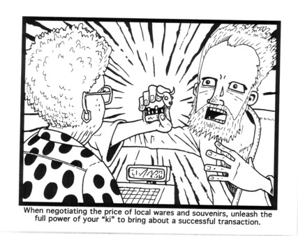 See, this is a main reason why I never take names down on this website: you never know when you’re going to see their work again. It’s been a couple of years, but I finally found a new book from Matt, and it’s a wonderful thing. This is a book of advice on how to have a proper vacation while following all the precepts of karate. It’s always a good sign when I could have sampled any page of a book (as the whole thing is hilarious), although if it didn’t take too much away from the story I would have picked the two page spread in the center with the karate master’s advice on how to clear out long lines. Or maybe the panel where he has to concentrate on imagining himself fighting a duck to stay mentally on the path of the warrior. Or maybe it would be his excellent advice about public transportation? You see where I’m going with all this: this book is fantastic and you should think about picking it up. Unless you don’t have a sense of humor about the karate stuff, in which case there’s no help for you. Oh, and it’s only a measly $1!