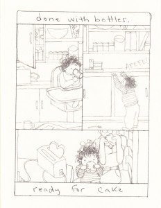 Well, this book took a turn for the better when I found out that this was actually all about Meghan as a kid and not about the early days of her child (if she has a child, which she may or may not, how should I know?). It deals with the first few years of life of a young girl, her various utterances (it’s tough to call them conversations) and happenings. It seemed almost too cute if it was about Meghan’s mythical child, but learning that it was about Meghan as a kid and that she’s doing this series to document the nature of memory and early life makes it a lot more interesting. This wouldn’t be the case if I had a kid of my own and/or shared the belief of all parents that their children and their children alone are precious little snowflakes, but alas, that isn’t the case. It’s irrelevant, as these are all stories told to Meghan by her parents about her very early days. I’d be curious to see a comparison after this is finished between her own memories and the memories that she depicts here. Are they largely the same? If not, where do they differ, and what does that say about everybody involved? This has the potential to be a downright fascinating series when all is said and done. I have no idea how long she’s going to depict this (it would lose some of the point if she kept it up through her teenage years where, if she was like most other teenagers, her parents lost touch with exactly what she was up to on a daily basis), but I am very curious to see how it all shakes out. $6