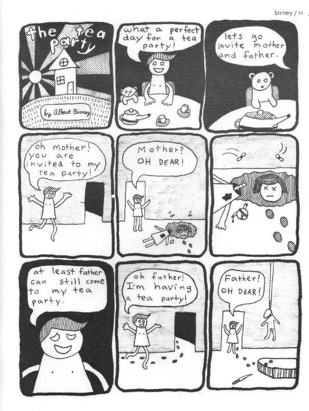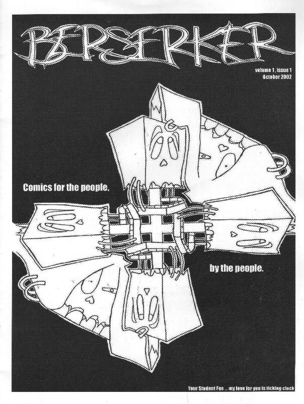 Well, at the very least they have a great name. This is a student collection with one person (MK Reed) who’s already on my page. Everything else is from people who do daily strips for a paper called The Daily Orange, but I have no idea where that’s from. There’s a pretty wide range of stuff in here. Hilarious drunk driving, the horrors of school, a tea party, Ride More Fatty, horrific date rape, wacky prison comedy and rabbits on the ark. A pretty solid collection, especially considering they’re all students (not that I have anything against students, it’s just that they seem to have their collective shit together pretty early on). MK Reed has gotten a lot better in the year or so since this issue came out, that’s for sure. There are probably still some copies floating around, as I managed to get my hands on this one, although the price of it is a mystery. $3? $5? Whatever the case, here’s an e-mail address so you can find out yourself.