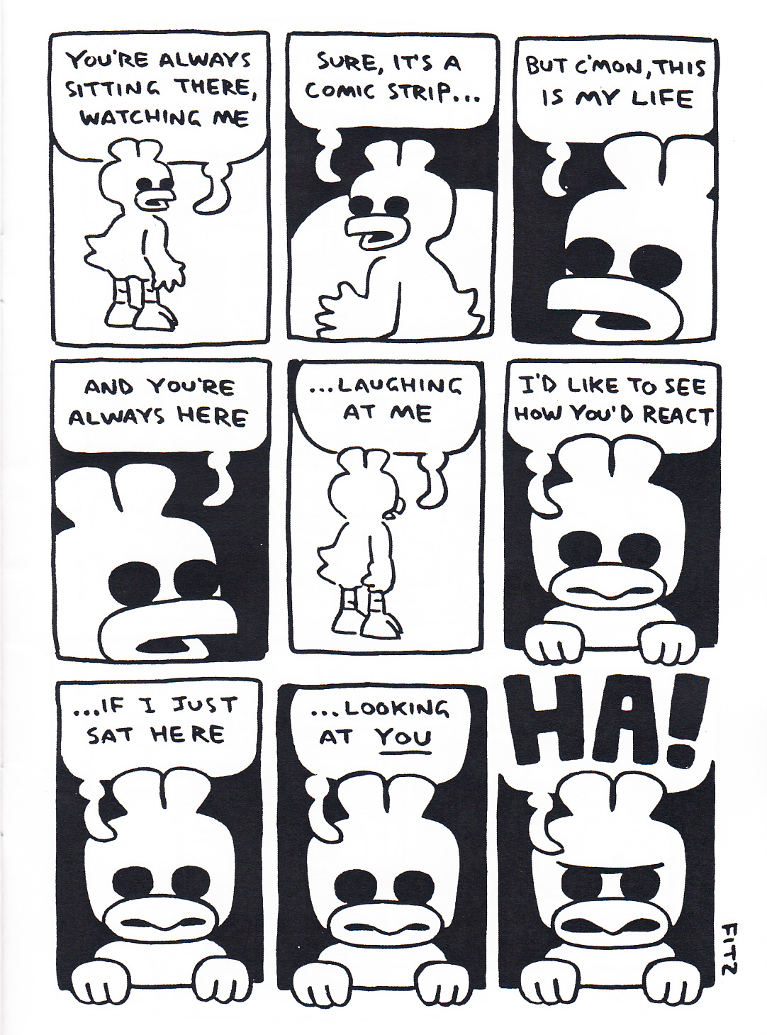 The ninth issue of Neil Jam was split up into three minis. One is talking shit about Batman, one is all about kicking and has a great last panel (not to give anything away), and one is about dinosaurs bugging people. $3, and have I mentioned yet that these are all incredible? The only thing I can think of that it reminds me of even a little would be Steven by Doug Allen, but I’m not sure what my reasoning is behind that.