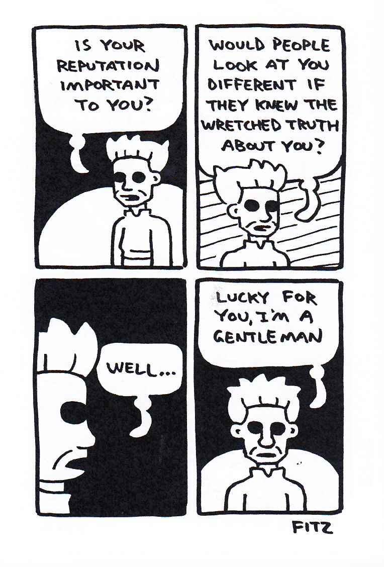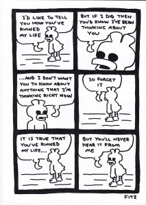 Has the internet and social media ruined auto-bio comics, or have they just made it impossible for anybody to be completely honest in them? Please present your argument in the form of a 300 word essay… oh right, I was just asking a rhetorical question to start this review. This is Neil’s post-breakup therapy, done in the form of a comic. And no, I am not a dick for pointing that out, as he makes it pretty clear in the intro/outro. But what got me wondering about that opening question was the fact that everything he said in here was incredibly vague or general. Sure, he knows what he’s talking about, and his ex knows what he’s talking about, and some friends of both of them do too. The rest of us get to see that he got dumped by somebody who completely broke his heart, for reasons that he doesn’t think are fair, and that if he did tell everybody what she really did then her reputation would probably be ruined. Which is most likely the answer to my question right there, as he doesn’t want to ruin her life. Maybe I’m just spoiled because I read the original Peepshow strips by Joe Matt again recently, and his honesty is so relentless that it’s shocking when compared to more modern comics. Of course, that was back in the late 80’s, where the only people reading his strip were the ones who actively went out and bought Drawn & Quarterly (back when that was the name of a bimonthly (?) anthology series), and it’s not like that particular relationship of his ended well, in large part because he said too much about their relationship. I seem to have looped back around into understanding exactly why Neil did these strips without giving away any of the really sordid details. Oh, and those giant black eyeballs of his? MUCH creepier when placed on a recognizably human face. Anyway, if you’ve been involved in a breakup where you felt like you were the wronged party, you’re going to relate to plenty of these strips, and you’re going to fill in some of the details with bits of your own life where appropriate. If you’re the type of person who has only ever broken up with other people, maybe you should read this to see some of the damage you’ve done in your life, you monster you. $4