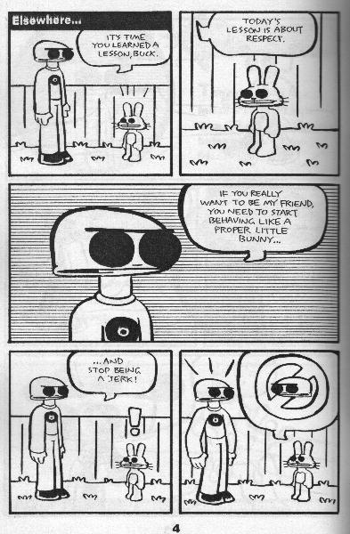 Finally, some quality time with the lesser characters of Neil Jam. This issue and #15 are both dedicated to the characters we may not see quite enough of, and with this issue Neil Jam has officially taken over the planet. The stories in this issue are longer than your typical pieces as well, with Caroline (the talking carrot) taking the bulk of the issue to grow a new friend, as she’d really rather not be seen with Cotton, the rabbit who’s in love with her. Cotton gets a new outfit to cheer himself up, then kicks a Tot into somebody’s face (not sure of the name, he looks like the anti-Willis), which has the desired effect. Other highlights among many include Bat Jam (in which “Batman” runs away from beauty), the Sleep Sheep’s ongoing quest to sleep with Willis, and the introduction of Fenwin, Caroline’s new friend. Well, as Neil Jam has officially taken over the planet with this issue the man doesn’t need any words of encouragement from me, but this has remained a delightfully disturbing book for years and years, so kudos to the guy for that. And for giving the fans what they want, namely more time with the odd characters that we don’t see nearly enough of. $2