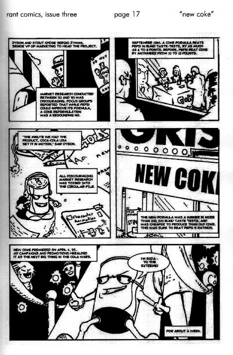 How the heck could I have missed this guy? Sure, it’s only #3, but you’d think there would be a bigger stink about him. This was a solid, if not fantastic, book. A few stories in here. The first is part one of a larger series about suburbia and trying to get out of it. Yes, everybody and their brother has done a story about being tired of where they live, but Neil does it really well. Then there’s a tiny piece about Explodey the Clown, a great illustration that he can do humor as well as the serious stuff, and a great chance to see a ten year old child explode. The illustrated history of New Coke is great too, although the bit about the roller of spring rolls didn’t do much for me. But then, I’ve never had a job quite that awful, so maybe I just couldn’t relate. The art seemed a bit scrunched, if you must have a complaint. Was it shrunk down for the sake of fitting into the mini format or am I just being oversensitive? Whatever the case, get this book, read it, and enjoy it. Good work all around. Check out the website or send him an e-mail, this one was $2.