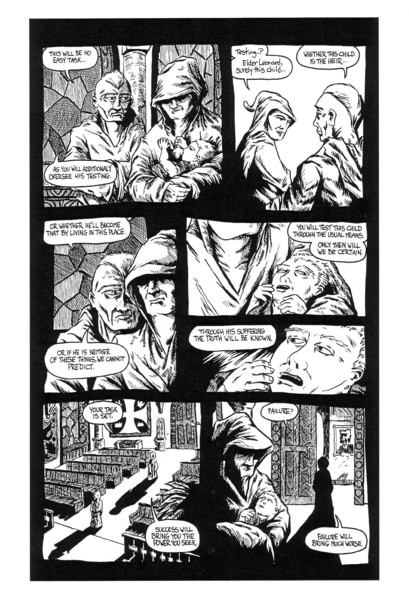 OK listen Rafer, I try to run a tight ship around here. I try to keep things in some semblance of order, keep creator’s book all on their proper pages and whatnot. So when things get to the point where all I have to deal with is the occasional preview issue, keeping order gets difficult. Luckily the actual story content is excellent enough that it manages to shove most of my neuroses to the floor, so kudos for that. For all the people who have been waiting for the Chester origin story, the real thing, it doesn’t get much earlier in a character’s history to show them getting slapped around as a baby. This tells the tale of where Chester came from (although there’s still more room to dig in that subject), a bit about the people who took him in, what their plans were and how exactly he ended up at Greybridge. Rafer is planning on a big old graphic novel some time in 2009, and I’m really hoping that enough people have picked up on this series by now that he’ll be able to tell his story in that format and be successful. Judging from the bits and pieces I’ve seen so far it’ll be worth the wait…