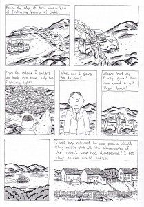 Anybody who starts with the fourth issue of a series is kind of stupid anyway, but I can’t help but think of at least one poor soul out there who picked this one up without seeing the rest of this series. Maybe they just liked California? Anyway, this poor person would have opened up the comic and seen (on the very first page!) a giant tentacled monster with one eye hovering over a house, a disembodied head bouncing around trying to stay away from the monster, a surprisingly calm family sitting down at a table while the monster smashed the table around them, and the disembodied head bashing into one of people at the table. If this poor soul didn’t spontaneously combust and they made it to the next few panels they would see the head bashing into a few more people at the table and those people vanishing after being struck. At this point I would only hope that they’d stop and go back to read the rest of the series, but hypothetical people can be stubborn. Oh hi, those were spoilers, kind of, for the rest of this series. But they were mostly from the first page of this issue so it’s OK to talk about them. This issues concludes the California saga, and after this one I’d say it’s safe to call it a “saga.” Once again I wish we lived in a world where something like this could be collected and released to wide acclaim, making Rob a wealthy man. But we’re stuck with this world for now, so you should maybe go back and get past issues for this series if you haven’t already. The rest of this issue deals with the horrible monster getting loose in the real world, the missing 200 townspeople, the key to defeating this monster, and the strategies of fighting an invisible monster. It’s a pretty damned great conclusion, all things considered. I loved the creepy teeth in that creature and how they seemed to go on forever, and life continuing to go on as usual so quickly after things wrapped up was nicely done as well. It seems like I’d already declared an older series of Rob’s as my all-time favorite of his (which makes me feel especially stupid for not remembering the name of that series, but it dealt with amusement parts (or my brain has just completely shut down on this topic)), but this one would have to be a close second or third. If you just read the first issue you’d have no idea that things would end this strangely, and that’s exactly how such comics should be done. Check it out and enjoy, and if we all wish hard enough maybe this could magically become a big summer blockbuster movie.