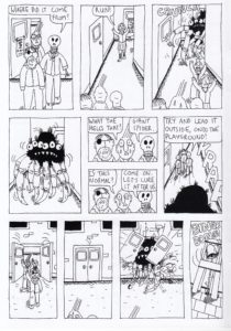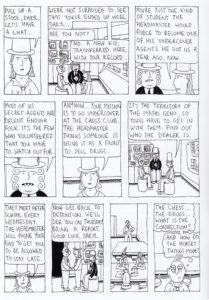 You know, I’ve been saying for years that more comics artists should put recaps at the start of their comics (continuing series, that is), but I’m wondering if that’s still good information. Is this comic available at many comic stores, or at this point do people mostly get them from the creators themselves? If it’s the latter then there’s no reason for recaps, as people would be buying the whole series. Granted, it would always be nice for people with crap memories like me who read the first issue six months ago regardless, but that’s just me. Am I way off here? Do most of you still get your comics from stores, online or otherwise? Oh hypotheticals, you’ll never be answered. So how about this issue? Our hero was selected to become an undercover agent after his troubles in the last issue, and his first task is to uncover a drug ring in the chess club. Along the way we get another brief peek at his mother (“peek” meaning we don’t see her at all, but we do see him caring for her), we see the world of P.E. in this school and the horrors that befall any student who forgets their gym uniform, the school play of MacBeth gets a cast (with the lead not going to Handsome Dan, which is bound to cause problems later), and Daryl continues learning more about these classes and teachers. Oh, and we also learn the secret of that robot on the cover, but I’m not giving up the goods on that so easily. Two more issues to come, and for once I’m doing the smart thing and reviewing them all in one week, so no faulty memory issues this time around!
