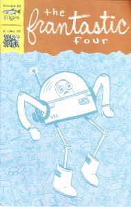 Do you automatically steer clear of any small press comics that you think might be super hero parodies? You do? Come closer to the screen so I can punch you. OK, maybe it’s not always a terrible rule, but you might as well punch yourself in the face if you skip out on this one. So much comic for $5! Things start off with Frank Frantastic being picked to fly to Neptune to check out some strange life sign readings. Frank has always lived in the shadow of his more successful older brother, who “died” in an explosion years before (Frank never bought the official story). He makes it to Nepture, discovers a substance that appears to be alien in nature, and then discovers the creature who was shitting out this other substance. Frank decides that this creature is too much like him to be turned over the government (even though, brilliantly, the creature never says a word), so he makes a plan to sneak him out of the shuttle and back to his apartment, using the hilariously unlikely means of putting a sheet over the creature’s head and leading him out of the space center. Once back at his apartment Frank introduces this creature to his roommate (a robot made years earlier by Frank’s brother), the creature is confronted by another creature who lived underground (he came to the surface after sensing the “evil” nature of the alien), the alien is given a name (“Celery”), and Frank draws the conclusion that they are now the Frantastic Four and that they should fight crime for a living. The rest of this damned hefty book deals with them trying out a number of different careers (as it turns out that nobody pays you to fight crime in such a fashion, and there really isn’t all that much crime to fight to begin with), showing what happened to the crew a couple of years after the events of the comic, and an epilogue where it shows how their lives ended up years later. This makes the possibility of a second issue of this series unlikely, which is a damned shame, but you basically have an entire series crammed into this one comic anyway. I’m increasingly of the opinion that Sam can do no wrong, and this comic has damned near set that opinion in stone. Buy this comic, laugh a whole bunch of times, feel better about the world for a bit! $5
