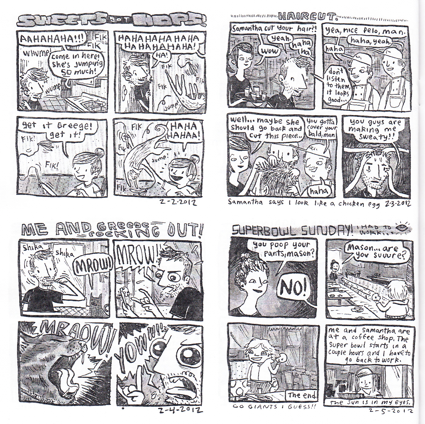 Do you like your comics funny? Do you like some or most of the creators I listed in the tags section (right below this post, in big letters, you can’t miss them)? Then this one should be an easy call for you. There, now that I’ve made that case, I’ll go about my afternoon… wait, you want something of substance? Egh, fine. Laurent Barnett does the “Me Likes You” comics (which you should already be reading on a regular basis), and she was one of the editors, so there, that’s substantive. Strips in here include Noah Van Sciver’s fever dreams (both with and without music), funny jokes that aren’t really jokes by Bort, Martha Keavney’s tales of a pet human, Nikki Burch showing us that saying “that’s what she said” too many times will end up with you getting what you deserve, Anne Emond’s cat style, Sam Spina’s ridiculously awesome sex comic, a couple of pages of single panel jokes by Sam Henderson (which should be worth the price of admission right there), Grant Snider’s fears and feats (he had four pages of strips and I don’t want to ruin any of them), KC Green’s depressed fish, Jane Mai’s dream of male lingerie, Nathan Bulmer’s tale of ninja tricks, Julia Wertz’ attempt to get serious and Ian Anderson’s tale of a bear that’s just trying to fit in. But wait, there’s more! And you can discover it for yourself if you buy this. Unless you just have an unnatural hatred for all anthologies, which I guess I could almost understand, but it makes no sense to hate the good ones too, and this is one of the good ones. Hell, just pick three of the names of people who contributed to this, go to their websites and see what there is to see. If you don’t laugh once then I release you from your duty to buy this, but seriously, good luck with that. $10