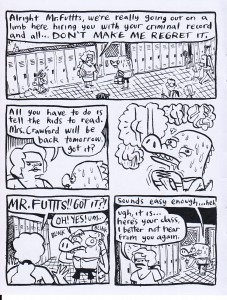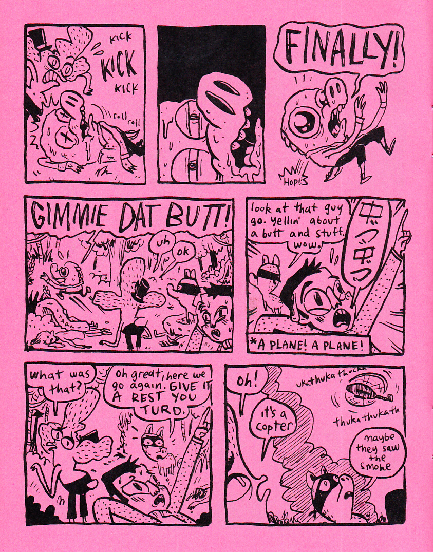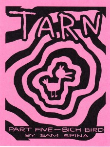 OK, new policy: I’ll be reviewing the remaining four issues of this series every Thursday until it’s done. Hell, I may convince myself to review them all today before I finish writing this review. Can Sam Spina do no wrong? It certainly seems that way. This is the story of Mr. Futtts. What’s his deal? He eats butts. So simple, yet so beautiful. Things start off a little rough, as Mr. Futtts is trying to psyche himself up to some unknown task. We soon learn that he’s a substitute teacher for the day, and his only duty is to get the kids to read. We also quickly learn that he has a criminal record for previously eating butts, so this job looks like a last chance for him. He takes over the class, panicked, trying to reason with himself, but things quickly fall apart from there. And then he sees an old lady, butt in the air, tending to her garden… and that’s where I have to stop talking about the story, as this is a wee little comic, after all. What does Tarn mean? Why do the other issues seem to have brand new characters in them? How does all of this come together into a series, or does it? These are all questions to be answered later, starting next week. In the meantime, if this was the only comic of this series, or indeed the only comic that Sam had ever made (luckily for us that is not the case), I’d still tell you to read it an enjoy. So do it! $5 (for the whole set of five books)