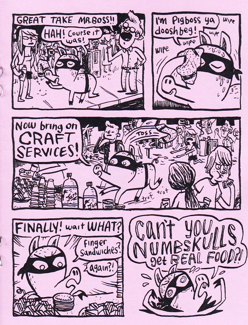 Oh, so THAT’S what Tarn is. Not that I have any idea of the larger significance of it, or how it ties in to all of these comics, but at least this issue mentions Tarn. Oh hi, did you not read the first issue and/or the review for the first issue? Well, in that case this might be a little confusing to you, even if this issue features an entirely different cast of characters from the first issue. This time around it’s Pigboss, who is filming the final scenes for some kind of action movie. He’s more than a little bit of an asshole, and he says his catchphrase whether or not the cameras are rolling. Still, things are going pretty well for him, except the occasional minor annoyance like not having the right food at the craft services, until he gets a letter from the head of the movie studio. This letter does not go over well at all with Pigboss, and it’s clear that a confrontation of some kind is in the cards. I’m still thoroughly enjoying this series, which is not a shock, as I’ve loved everything else Sam has done. It’s probably a bit early for me to tell you to go ahead and buy this whole series when I’ve only read the first two issues, but eh, what the hell, buy the whole series. It’s only $5, and unless Sam’s brain fell out along the way I feel confident in saying that it’ll be worth it in the end. $1 ($5 for the set)