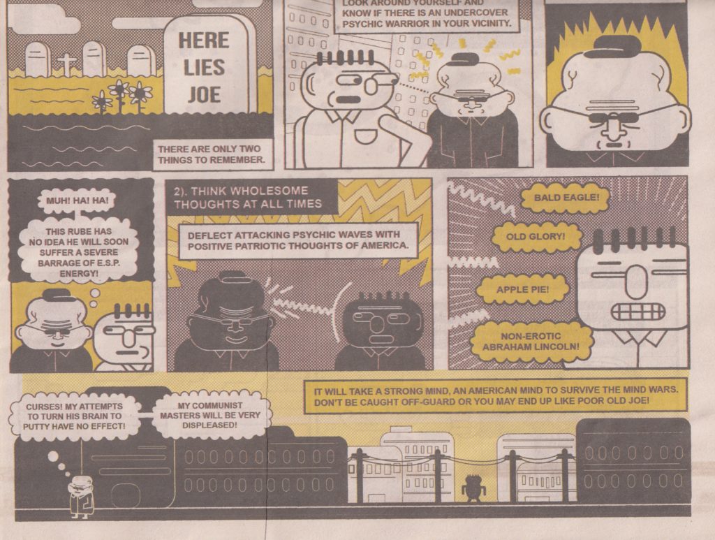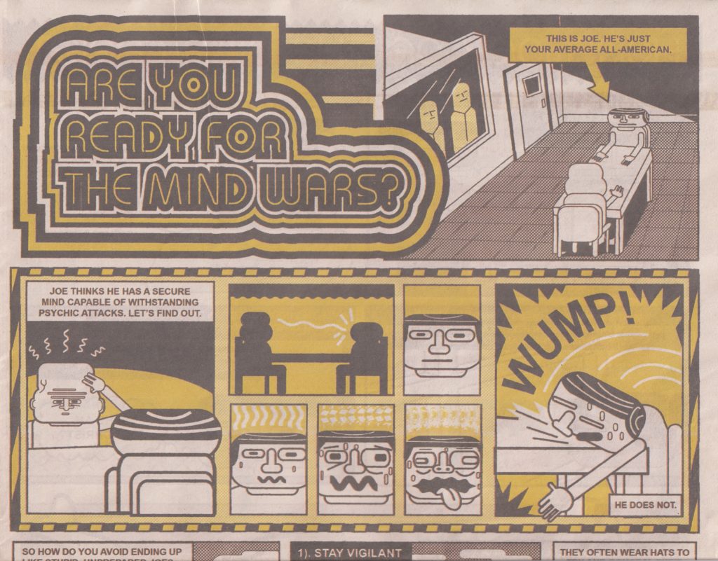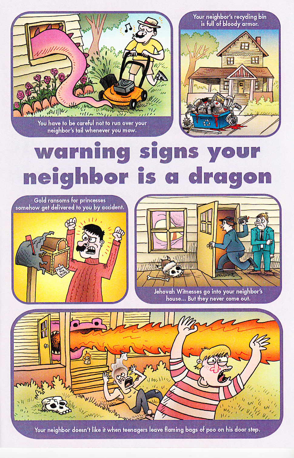 Confession time: I’ve often been hesitant in the past when it comes to reviewing comics that come in newspaper formats. Not for any aesthetic reason, it’s just that I’m a simple country reviewer, with a regular old scanner that can’t handle the size of such things. Well, I think I’ve cracked the case. The sample image cut off a little bit of the words, but I think I nailed the combo cover image. And that concludes the segment of the reviews that nobody asks for: behind the scenes at Optical Sloth! I’ve been reviewing Steve’s book for lots of years, but it’s been a few since I’ve seen any of his stuff. He sent along a few of his newspaper comics, and this one in particular is a hoot, and a bit of a departure from some of his other stuff that I’ve seen. It’s a collection of short pieces, but thanks to the format he doesn’t have to worry about space constrictions and he uses that to his full advantage. Subjects include a hilarious piece on how teachers have learned to detect the early warning signs of a potential anti-christ in their classroom, the terror of seeing unknown warning lights in your car while driving, an awkward message sent by an even more awkward gift, the different types of parasites in the midwest, the research and conclusion of a recently discovered terrarium in the human stomach of a comatose patient, a simple test for determining what types of hair you’ve found in various apartments, and a brand new personal defense system that’s designed to stop bigger dudes (and impress horrible women who are only attracted to violence). You know, I was going to wrap this up by mentioning how his (already impressive) artwork has somehow managed to get even better, but after going through that wrap-up on the stories in here, I should really point just how damned funny this comic was. Just about every one got a laugh out of me, with the possible exception of the stomach terrarium story (which was really more of a horror piece anyway). Give it a chance, why don’t you? Don’t you like funny things too? $10