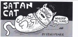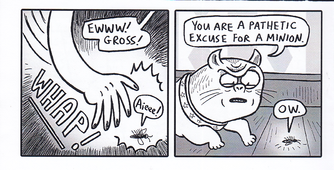 Aw, look at the cute little cat mini comic! This is a shortie with a very simple premise: a cat thinks that it is Satan. Or maybe the cat is Satan? There’s at least a second issue of this series, so maybe we’ll find out later! Although it’s most likely just a regular cat. Anyway, this issue deals with the cat (named, according to the food bowl, Muffin) trying to order a bug around as his minion. The bug is skeptical but follows along, mostly because the cat is very much larger than the bug. This goes on for a bit, the cat convinces its owner to give it fish bits, which then annoys it because its mouth is too small to eat as many fish bits as quickly as it would like. Things are resolved (no, I won’t spoil even this), and that’s that. Like I said, this is a very short story, but it’s cute and there’s always at least a little bit of ambiguity about whether or not any one cat is actually Satan. Check it out if you like cats or Satan!