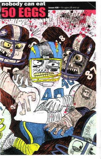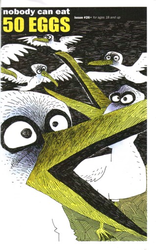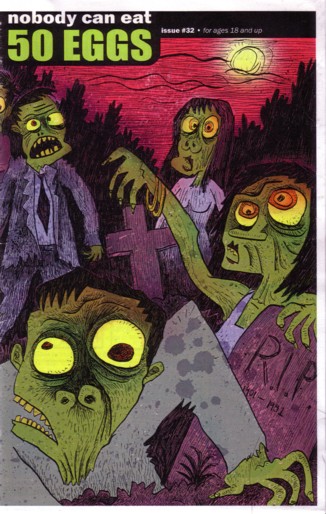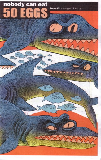 At last! A book with nothing but the Crocodile Man. Where does he come from, where does he live, how does he get to work in the morning? And why doesn’t he go on a rampage and kill everybody in his office� OK, some of those questions remain things in my brain and unanswered in the comics world, but others are answered here. We get to see Crocodile Man’s roommate, the general confusion he strikes into the hearts of people at the bus stop, and what exactly he’s drinking when he’s sitting at the bar. Yes, it is as disgusting as you think it is. Seriously, kudos to Steve for putting this thing together. I like most of his stories in 30 Eggs just fine, but I think the world was ready for a concentrated dose of Croc. And did I mention that it’s all in color? No price on this, but let’s say $3, and everyone who likes funny should have a good time with this.