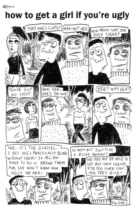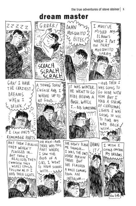 Look out, it’s a zine! Well, half zine and half comics, but screw it, the site is now open to zines. Why� Mostly because this one won me over, and the only reason I hadn’t bothered with them in the past is that I already had my hands full with the comics, which seem to be coming out more and more sporadically these days. So I’ll take my independent, free-thinking acts of artistic expression any way I can get them, thank you very much. Like I said, about half of this is comics, mostly fairly sloppy drawings about dreams, unrequited love, and some madcap fun involving a gun and an agile monkey. The meat of the book, though, is in the text pieces, specifically the one entitled Get Rich The Easy Way, a nice step by step tutorial on how to marry a rich old man and sneak your way into his will. Steve details the whole thing in detail, including the fact that you may have to get a sex change to marry an old guy, but old women tend to live longer and, at the end of the day, the sex change will have been worth it. He also deals with a much better death scenario for the Crocodile Hunter (is it still too soon to make fun of that? Oh well), stereotypes at weddings, evolution gone wild, alternate hunting weapons and the seedy underbelly (and knees) of the Amish. Something made me chuckle on almost every page here, and it’s hard to come up with a better recommendation than that. Also, the fact that he’s at #26 is impressive as hell in this day and age. $3
