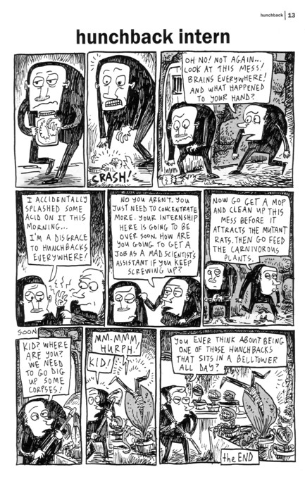 Steve’s been sending his books along for a lot of years now (I want to say at least a decade) and while I’ve always enjoyed them, I’d swear that the dude has hit a new level in recent years. These newspaper comics of his are absolutely hilarious. As in, I put the paper down a few times to wipe my eyes because I was actually laughing hard enough to be crying. That’s as funny as funny gets! Please don’t sleep on what a rarity this is, and do yourself a favor by grabbing a few to see whether or not I’m correct. Humor is subjective and all, but everybody could use a few more laughs in their lives, and these magazine comics are chock full of them. What’s this one about, anyway? I included a single page strips as a sample, because this one really takes you on a journey. Is Dragon Roommate funnier, and should I have included that instead? Maybe so, but that just means you still get to read it for yourself, totally unspoiled. Other stories include Goth Bot (her friend, her crush, and her parents; this one really took me on a journey), a set of trading cards (cut them out yourself!) with only the “greatest” skin ailments, The New and Improved Death Maze (what to do if you’ve made a fool of yourself with your previous death maze), Judge Alpha (not the most caring judge, and not one you’d want in charge of your trial) and Ham Goblins, of which I will say no more. There’s also a wonderful center spread of a new toyline (my favorite was Stained Glass Robot, but there were many fine choices), followed by a description of their creative process. Again: if you think that comics should be funny, whatever comics this man is putting out at the moment should be required reading. Also don’t be afraid of those numbers in the title, these aren’t connected in any way I can see. $10