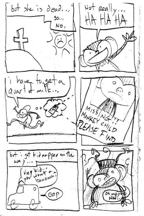 Here’s another one of the 15 minute shorties, this one about a monkey on his way to the market, as you may have guessed from that title. Well, except for the monkey, as he’s not mentioned until you open it up. From there things get odd, as the monkey is trying to remember what it needs from the store, but then it gets kidnapped. Or it doesn’t, as why would a monkey be going to the store in the first place? Unless, of course, he was going to the store all along! Tod tackles all the deep questions about existence and being in this confusing universe of ours in a short 8 page comic. Or possibly he just wanted a comic with a monkey in it and it went off the rails a bit due to the 15 minute deadline. You make the call!
