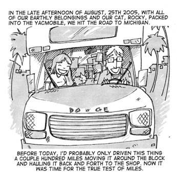 Hey, when I get to pick the title I’m always going to go with just the better one. Tod had the brilliant idea to cut back on expenses for hotels, flights and rental cars by getting an RV and touring the country. Seriously, it’s such a good idea that you know already there’s no chance of it working out well. Before getting started on this tour Tod decides to take it to Michigan with his fiancee and his cat, as they’ve decided to move there. It’s a comedy of errors from there, if you could call the vehicle systematically falling apart “errors”. This is a fantastic travel journal all around, and this is free as a “thank you” to all the people who helped while this vehicle was impounded and/or in need of repairs. Personally I think he should sell the minis for $1000 each to try and recoup the losses, but there’s probably a lot more to be said for giving these things away…