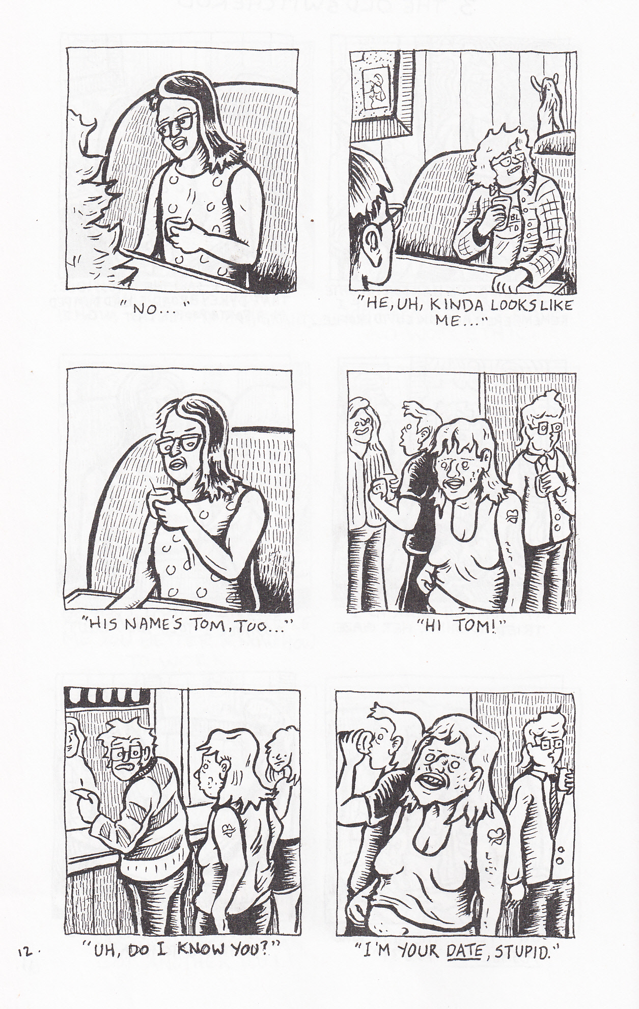 Are there any guys out there who need to feel better about their awful dating life? This might be the comic for you! Or it might not be, as at least this guy is going on dates, and maybe that is not true in your situation. Anyway! This is the story of Tom, who is either partially or not at all based on the Tom who made this comic (I’m guessing “not at all”) and a series of his dates based on women who responded to him on OKCupid. Which is the dating site for people who don’t want to pay to be on a dating site, in case you haven’t heard of it. The trouble is that Tom (the character) is an unrepentant asshole in just about every way, which makes dating difficult. His first date is with a vegan hippie lady, so his choice to start it off with a joke about “fags” doesn’t go over too well. Still, booze is a hell of a thing, and drinking enough of it would make just about anybody attractive. Tom has a shallow (but hilarious) moment, things do not end up going well and he ends up drunk at home by himself. The next morning is awful, but Tom is a trooper and already has a date lined up for dinner that night. Unfortunately the lady from his previous awful date is there as well, and the date that he did line up looks nothing like her profile picture, and there’s still all that wonderful booze around to confuse things, which is about where I have to stop getting into this to avoid spoilers. There are also three short strips at the end in the style of the old Peepshow strips (lots of tiny panels on one page, just in case any of you philistines haven’t read the early work of Joe Matt). One deals with one of the worst job interviews I’ve ever seen, one is about a party and Tom’s attempt to win everybody over, and the last one is one more date to round things out. This is funny as hell and you’re going to have a hard time reading this without ending up feeling better about yourself. After all, chances are that you aren’t nearly as big of a dick as this guy, and that’s something, right?