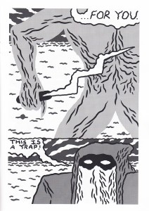 Here’s hoping it’s still OK to use images from the internets for the review, as it’s impossible for me to scan the newspaper sized stuff. And if you agree with me that Benjamin Marra is tearing shit up with that cover, you should see the back cover by Pat Aulisio. I’m also not entirely sure if it’s possible for any old schmuck online to get a copy of this, as I think it’s only available at cons, but that’s a damned shame for a pile of great strips like this. Share it with the world! If I’m not mistaken (and I probably am) this one is even longer than the last issue, and it’s one of those rare anthologies with no really weak pieces. Sure, some things are better than others, whatever that means, but everything in here has something going for it. Strips in here (and they are strips, nothing is longer than 2 pages) include Pat’s tale of deliciously sorrowful soul, Luke Pearson’s absolutely brilliant “How to Exist For a Day,” Ian’s silent cubed spy story, Josh Burggraf’s text message-a-rific story of need, Cody Pickrodt with some true confessions, Bob Pistilli going a long way for a great ending, Box Brown and his experience with an exotic “delicacy,” the story behind that ridiculously good cover by Benjamin Marra, Art Baxter loving the summer, Simon Gardenfors getting the most out of his page with a series of mishaps involving a round dude wearing underwear, Kelly Phillips wondering if there’s a line cardiologists should not cross, Cyn Why with a tale for the ages, Steve Teare going to heaven, Doug Slack with a pile of funnies, and Jose Mochove & Rusty Rowley using photos to destroy us with reality. I skipped a few to leave some surprises for people who manage to find an actual copy of this, not that I spoiled too much for the other stories, but everybody likes surprises, right? Seriously, show this to the world, you guys! A working table of contents, a huge pile of talent, this should not be kept away from the world at large. Unless it isn’t, and I’m wrong, in which case let me know and I’ll tell people here how to buy it.