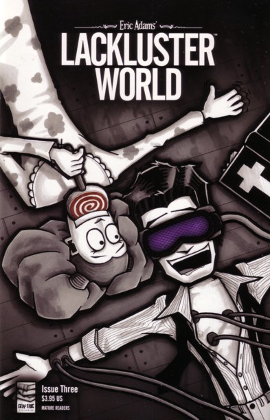 This time around Kelvin and Celsius take things to another level when they plug in their non-believer brother, Fahrenheit, to a virtual reality religious converter. Oh, you should really look at the other reviews before starting in cold with this one, it won't make a bit of sense. The bits inside the brain of Fahrenheit are priceless, and let me run down the cast of characters that try to convert him: a fireman, robot, talking bear, missionaries, cats, and Jesus. And of course, maybe my favorite background character ever, a smiling cross with three little smiling nails resting on its arm. Sheer genius. The rest of the comic deals with Fahrenheit's partner showing up late for work again (although he at least manages to save the day) and Fahrenheit killing Jesus 88 times in an effort to get out of his virtual world. I've been liking these a bit more each issue, and this one continued that trend by being my favorite of the bunch. $3.95, maybe some day soon there'll be a nice graphic novel for all of these issues, but for now it's worth it get it piece by piece.