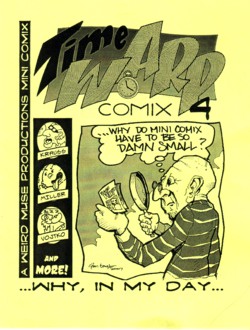Here’s another anthology by Dan and some of the “old school†mini comics guys. Things this tiny (an 8 page mini) generally defy any sort of detailed analysis, but let me make one request to Dan: please list the contributors somewhere in the book. You’re killing all my street cred of being some sort of a mini comics expert (and I hope nobody thinks that anyway) when I can’t place Strauss, Vojtko and D. Miller. Anyway, there are some funny stories in here. D. Miller has a great two pager about a baby getting the hang of things, Vojtko has a funny piece about an old retired mini comic artist, and Krauss does a good job of taking some whippersnappers apart when their questions get too personal. All told, it’s well worth a look if you like old, cranky cartoonists who still have a sense of humor.