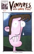 It looks like Brian has graduated from the world of tiny, tiny comics into the world of “regular†sized mini comics. I’m not sure what he’s planning on doing with all those other series, but I think there are at least characters from some of them that’ll pop up here and there in his work. This one is about a lonely, sad vampire, as you can probably tell from the cover, and his quest to find a woman. He runs into a blind, obnoxious bat, a Mexican lizard, and a tiny fairy who offers to help him find a woman, at least until she discovers that he can’t dance. This has a lot less mayhem than the average Cattapan comic, and I’m all for mayhem. Of course, it’s a more quiet, introspective book by nature, so less mayhem might be expected, for now. And I don’t get why so many pages end in a bad pun. Pace yourself, man! You have more than 8 pages to work with now, you can throw as many bad puns in as you like! All in all not his best work, but it’s OK. Future issues will tell the story.