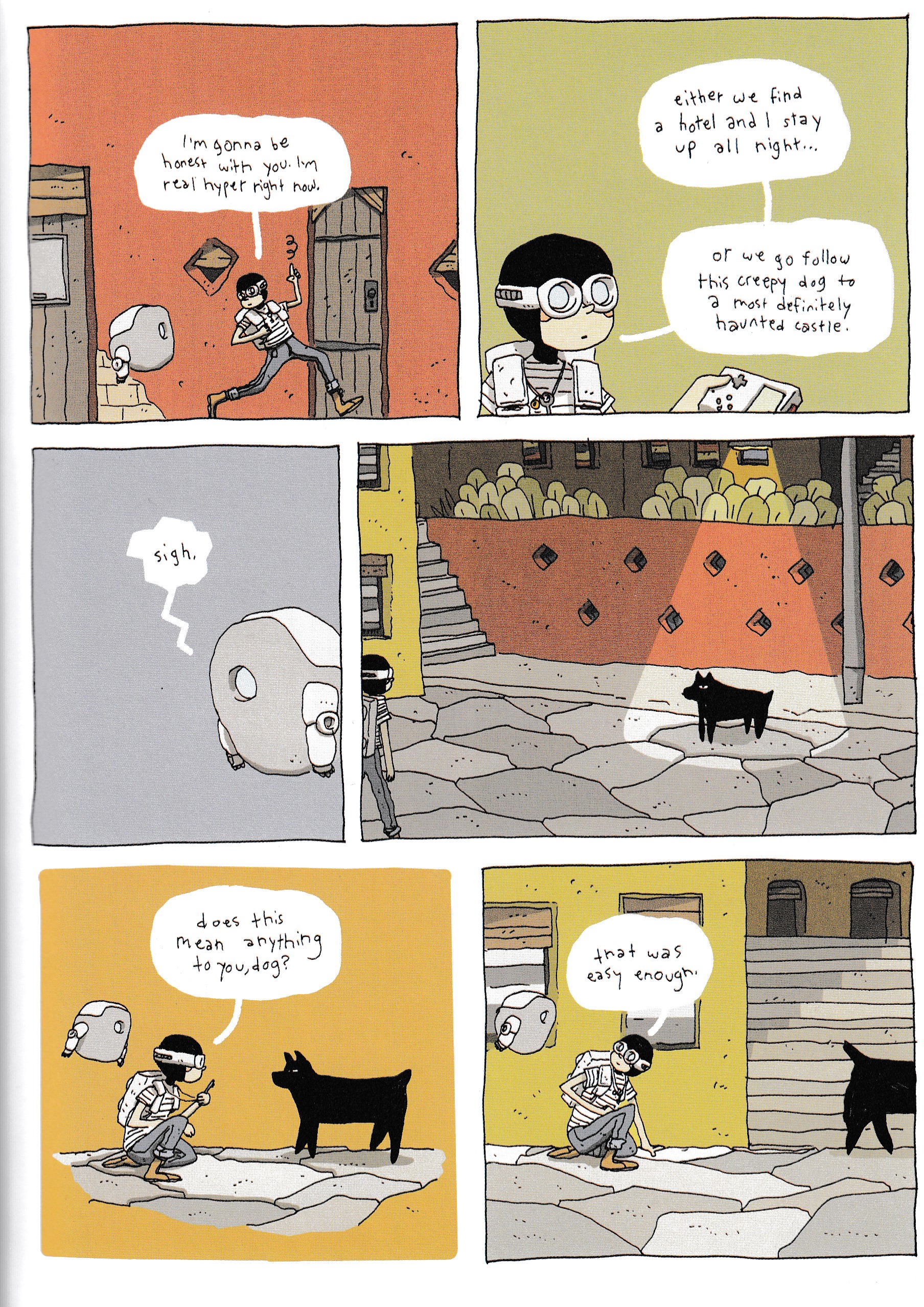 I got a rare, genuine, audible “huh” out of myself when I did a search for Ben’s name here and realized that I’d really never reviewed one of his comics. I’ve been hearing his name for ages, how was this possible? Maybe I’ve only seen his work in anthologies? Still, genuinely shocking to me. So how was this, the first of his comics that I’ve read? Well, it’s full color, and for this setting that was a solid choice. Things start off in a seedy bar, with our hero (I don’t think he’s ever named) using his robot to cheat at cards, which is something that the man he is cheating strongly suspects is happening. That was also an eclectic mix of thugs, considering the fact that we don’t see most of them again. Our hero excuses himself, tries to escape and is chased by a large rocky bodyguard. Due to a little bit of ingenuity they both escape, and then they get a tip (from as big of a “red flag” type tipster as you’re ever likely to see), and make their way to a mysterious city. They follow the clues (the dog standing in a spotlight was a nice touch), make their way inside, and are immediately confronted with oddities. A skeleton holding a mysterious book! A typewriter typing by itself (and getting very annoyed when our hero started typing)! Still, they’re not finding much in the way of actual treasure, but they do run across the couple who has set the trap, and there’s no way I’m going to spoil why they set it in the first place, but it got a solid chuckle out of me. Our heroes are put into a cell with more captives, things go down, and there’s even a series of illustrations in the back from other artists depicting our hero. It’s a thoroughly entertaining comic, and it opens up yet another artist who I’m apparently way behind on reading. $8 (on sale at Ben’s website)