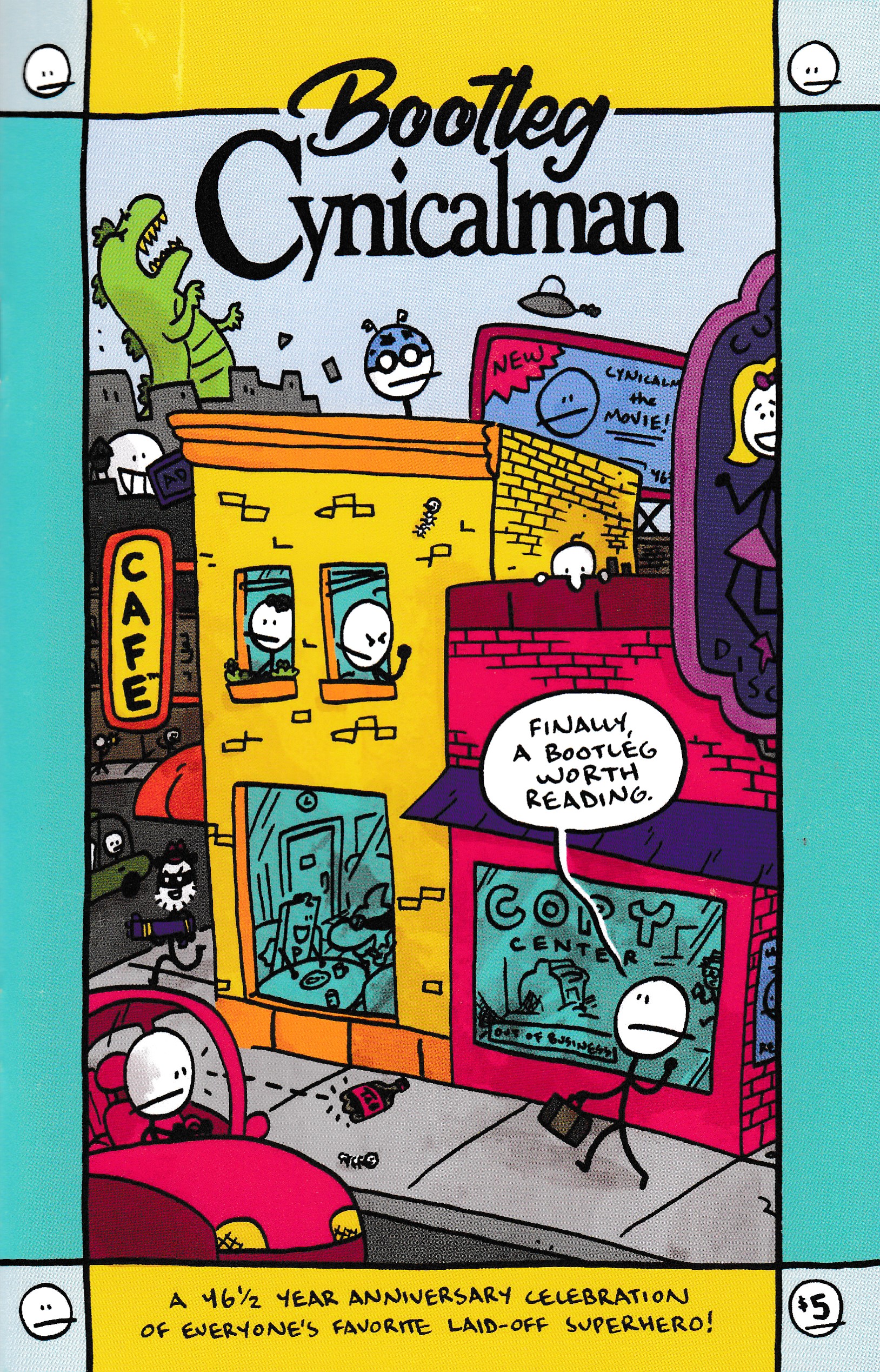 Well well well, looks like we got us an old fashioned anthology comic! With no obvious website to be found or easy way to purchase it either. Still, what am I supposed to do, NOT talk about it? I’m going with the theory that the links provided will be more active soon. There are a few different stories in here, as “anthology” implies, and the names are linked in the tags if you’re curious. If you want more details, first up is a Steve Willis story about the wonders of a food dish from the perspective of a cat, followed by a story (illustrated by Charles Brubaker) showing how a man in a giant cat costume responds to being challenged by three talking dogs. No, the “talking” part never seems to bother him, but the guy was being threatened, so maybe he was a bit distracted. Next is a story (illustrated by Bob Richart) about a very protective elf who guards the secrets of a statue, and does so by transforming the noses of anybody who asks. These noses also apparently grow into a second body coming from the person’s head, which could have been played for horror but was instead more about the farting ability of the new body. In an anthology like this one, that was clearly the right way to go. Next (with Jack Lattemann) is a story about the journey of artwork through the mail service, which anybody who uses the post office can sadly relate to. The last story in the comic (with Buzz Buzzizyk), is more of a musical piece, and in keeping with my habits I’ll leave that one up to the reader. Finally on the back cover there’s the story of a perplexed wizard, with an anonymous artist so I can’t say much about them. It’s a solid pile of funny stories, and what more can you ask for really? If you can find it, give it a shot why don’t you? No price, but $3 maybe?