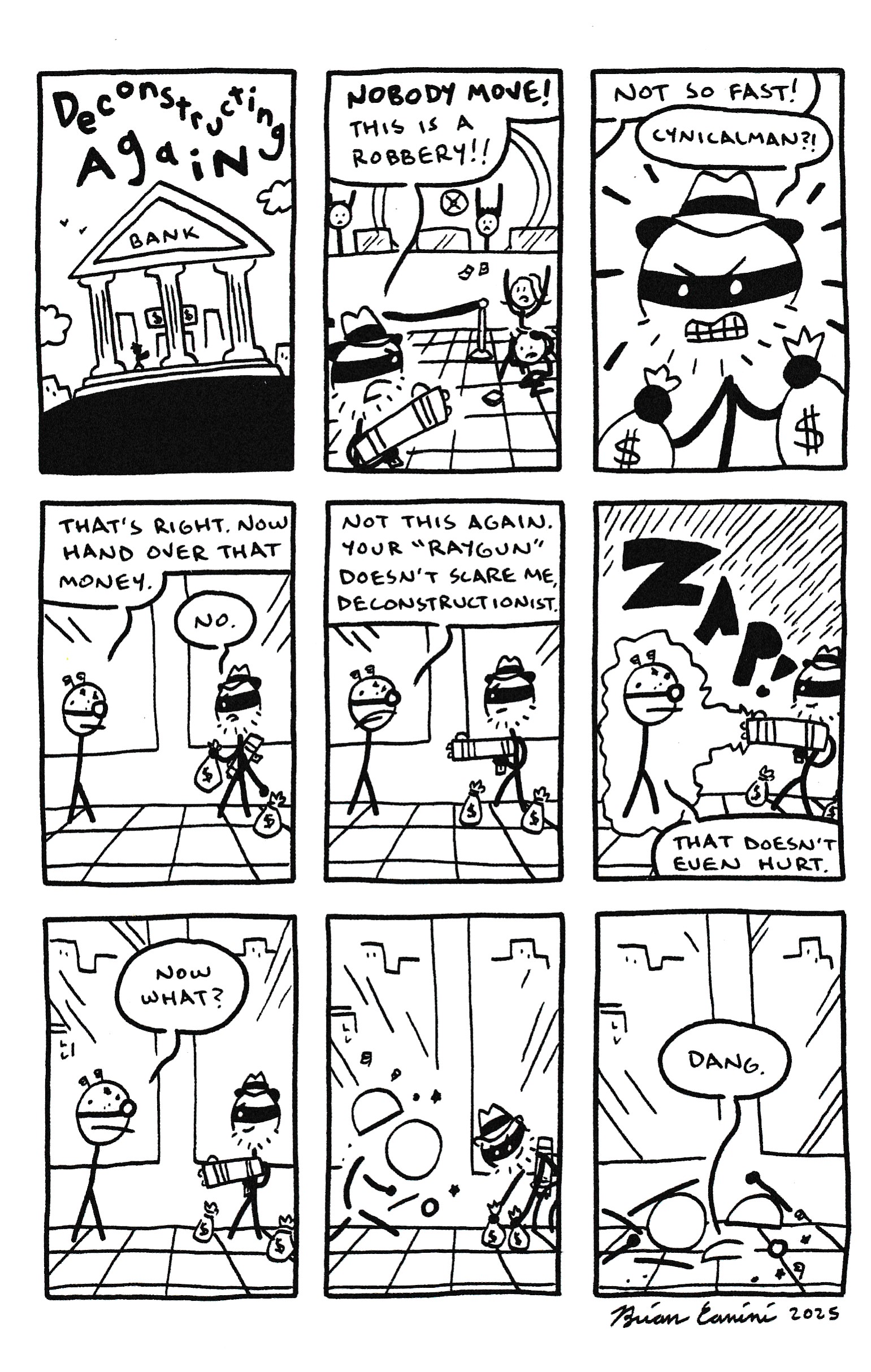 This is yet another case where I’m tempted to just paste the description on the back of the comic here and call it a day, but I shall not! I’m a professional, damn it! Oof, how degraded has that term become if I’m allowed to say it? Anyway, avoiding my dubious qualifications regarding giving my opinions on comics (I’ve read a lot of them for a lot of years and I’m willing to pay a hosting fee for the website?), this one is fascinating. It starts off describing the infinite staircase from Super Mario 64, which I don’t remember at all, but the game is good lord 30 years old now, so it’s probably best that the fine details of it have left my brain. Leo goes into detail about how it’s of course not infinite at all but a trick to deceive the player, before tying that into the famous Penrose Staircase by MC Escher and then bringing that together with the 1946 film “A Matter of Life and Death.” How on earth does all that tie together? Pft, like I’m going to spoil her conclusion. I will say that her tying the only solution to the infinite staircase in Mario to both those three things and what we experience in life was brilliant and that, as always, it was disturbing to see Mario drawn as more or less a normal human being. I don’t know why that’s always unnerving, but it certainly is. Overall this is another damned fine entry in the mini kus catalog, so give it a shot why don’t you? Especially if you have fond memories of this game, because there’s technically a cheat in here for it. $7, or $22 for a pack of four comics (I haven’t reviewed the other three yet, but this is usually one of the safest deals in comics)