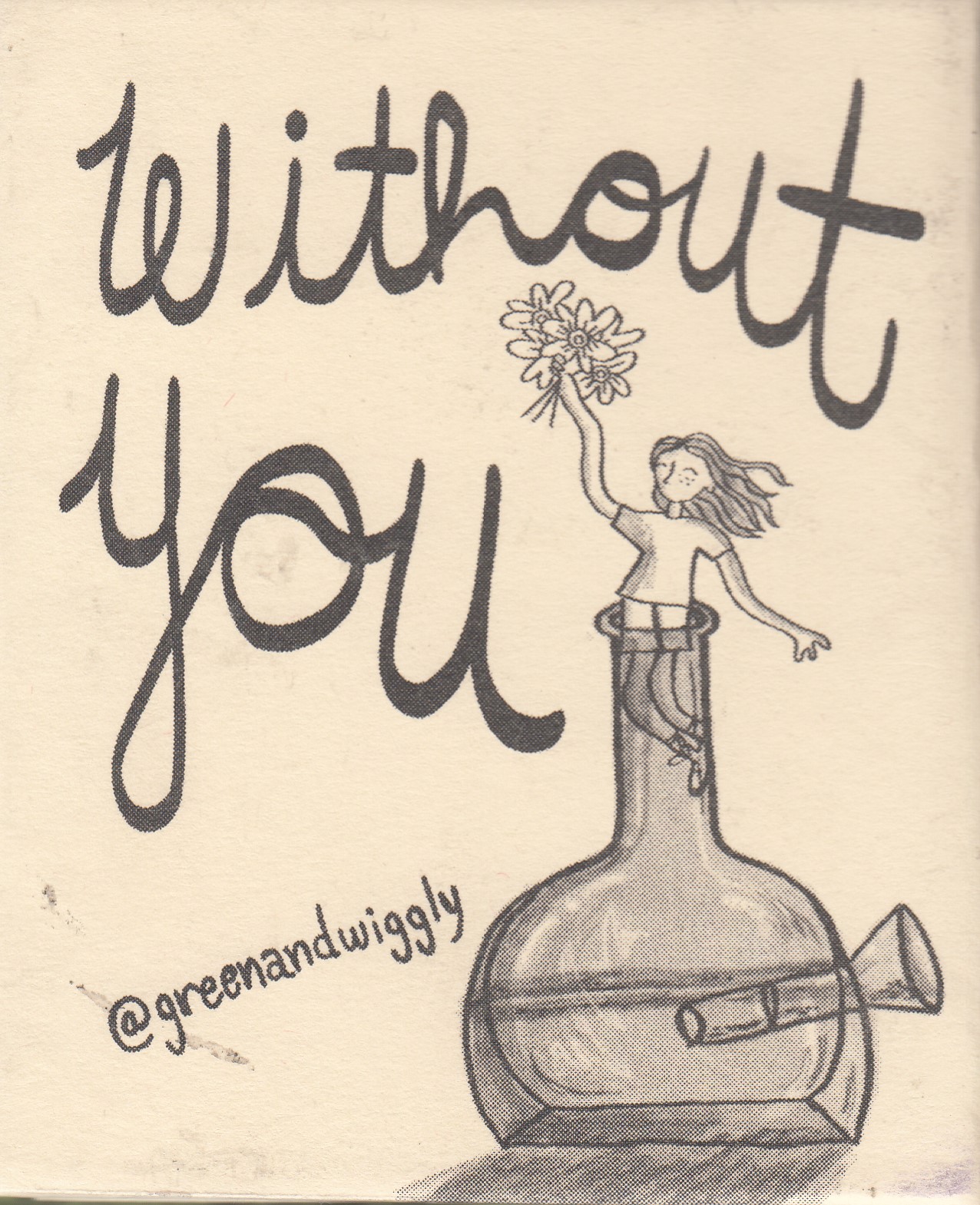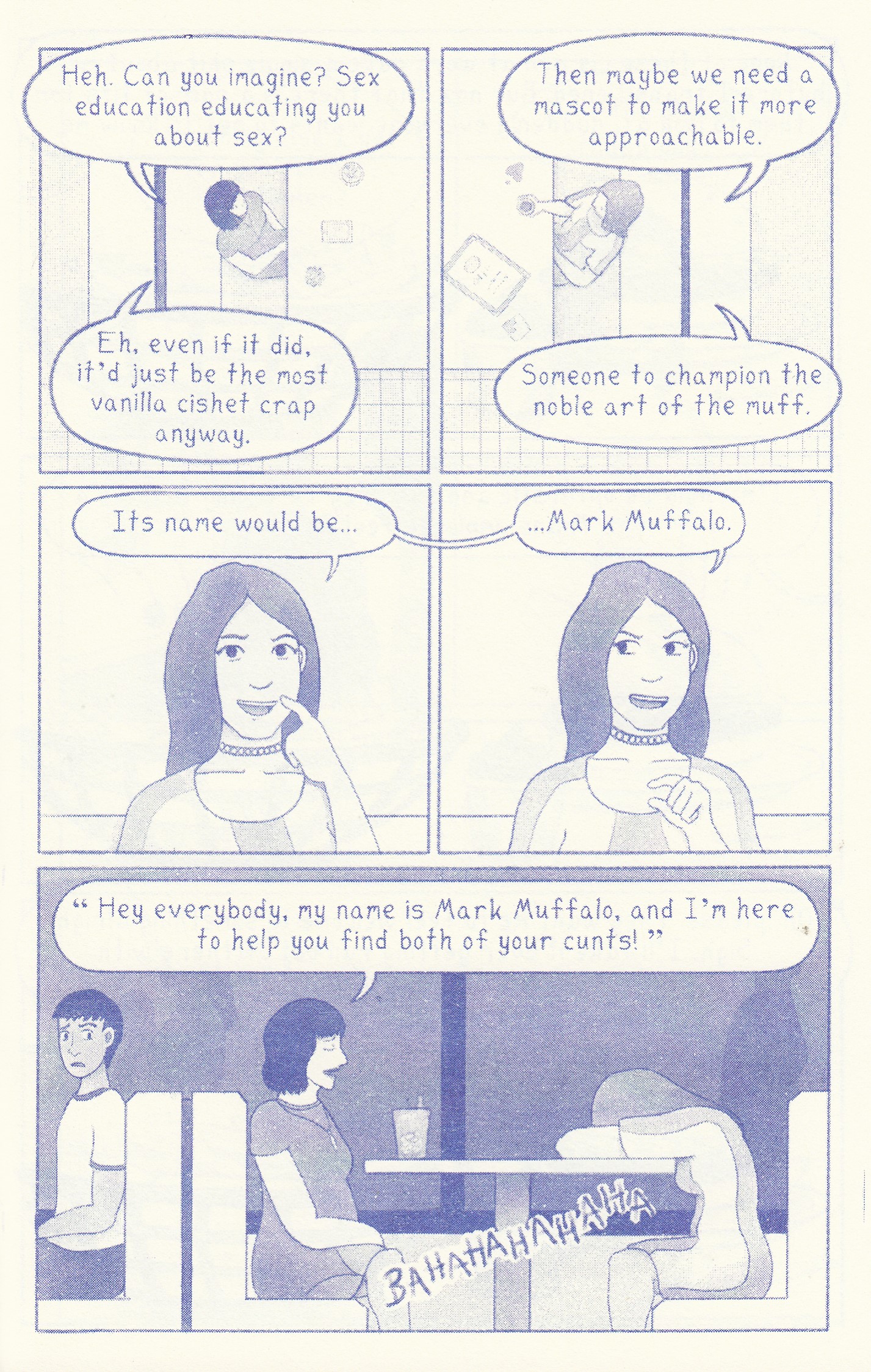 I’m doing my level best to stay focused on this comic, but did you know that she has a comic on her website that’s made entirely out of felt, encased in a felt cheese grater? Granted, it was purchased for a book collection and is not for sale, but wow is that thing ever impressive. It looks like Hannah is working on her first graphic novel at the moment, but she does have a few other comics available, so it’s not like she’s brand new to this. And the bags she has available for sale! OK, I’m wandering far away from this comic, but seriously, check out her website. This is a flip book that’s also an accordion comic, meaning that each of the covers above depicts a different time in her life, and that you need to pull the comic out like an accordion to read it. Kids, accordions are musical instruments that… nah, I don’t have the energy for that. If you can’t picture it, you’re already on the internet, so I’ll bet you know how to find a picture of one. The comic is a snapshot of moods, one where she’s surprised at how casually she ended up with a girlfriend living with her and another by how much better her next relationship is by comparison. It’s a shortie, so there’s not a whole lot to say about it other than it’s universally relatable to everybody who’s ever thought they had it good only to finally find the real thing. The craftsmanship of this book is impressive too; part of my reviewing so many comics over the years means that I’ve reviewed several accordion comics by now, and they inevitably seem to start falling apart after a few reads. This sucker is sturdy and would take some serious effort to pull apart (not that I recommend trying). After reading this I’m very curious about her upcoming graphic novel, so you can expect that to be reviewed here after next year’s Cartoon Crossroads (or sooner if I see it at Chicago Comics or something). $20