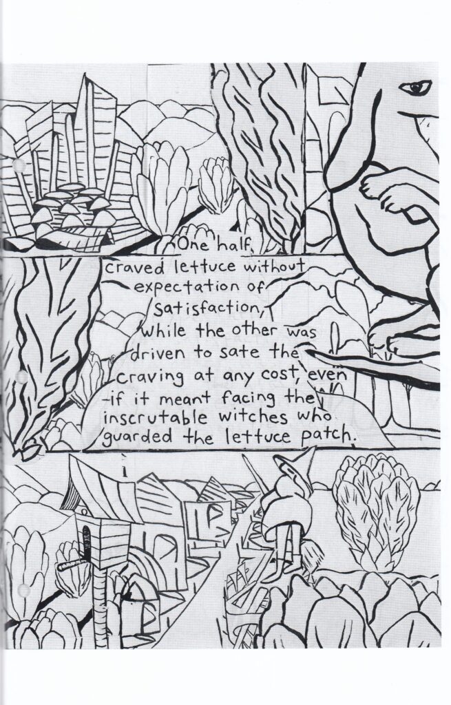 Was I expecting something autobiographical after seeing that title? Reader, you know I was, but this is actually a dream comic. Scott sent along a big bundle of his comics (21 issues I think?) in this series, and they’re arranged by theme. The first five issues are dream comics, but what am I going to do, NOT review the first issue in the series? Madness. Maybe it would have made more sense to review the first five issues as a chunk, but I’m committed to this one now, so maybe don’t be shocked if the next four issues are a bundled review. Trivial information for people who didn’t ask! Scott does dream-like comics very well, and this issue is no exception. Forms are constantly splitting and merging, perspective changes, reality is in doubt, and there’s a general sense of wondering what you just read after finishing it. I mean that in the best possible sense! Trying to describe any kind of dream comic is a fool’s errand, but I’m just that kind of fool. Things start off with a gorgeous sequence of images attempting to coalesce into a theme before finally settling on driving down a highway towards a town named Rapunzel. The car shifts into him being one (or two) stray dogs who had to sing for their supper, which is what he had always been. Their supper was lettuce, which was guarded by witches flying kites. Of course, he never was a dog, which he also figures out eventually. There’s more, but I think you get the general sense of it, and I don’t want to spoil even a dream. More to come, so I’ll have a more informed opinion as I go, but this was intriguing and I’m curious to see more comics in this series. So far I’m only seeing this for sale as a bundle of the first five issues for $25.