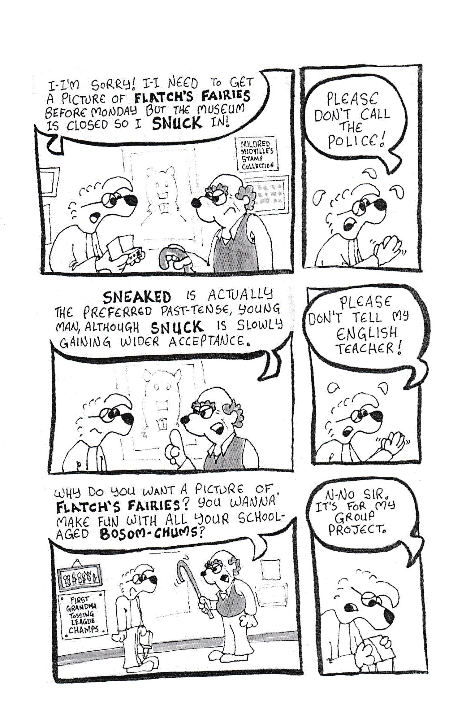 No, that’s probably not the actual title, but after wondering what to call these comics the first time around I’ve decided to just go with the first phrase and call that a title. Just trying to keep these even slightly distinct from each other, since I have more of his comics to review eventually. This time around we get several excuses from our hero as to why he’s calling in sick to work on every day of the week, which is… exactly what happened in the last comic of his that I reviewed? Huh. Lemme just go back and make sure I didn’t buy two copies of the same thing… nope. It even has another recipe for a hot dog casserole, but here’s the twist: this one doesn’t have sauerkraut in it. But it does have peas, which is another instant veto from me. But if he keeps putting these recipes into every one of these comics, I’m bound to run across a recipe I like one of these days! So if you’ve already somehow picked up the previous issue I reviewed and see this one at a con, should you buy it too? I mean, yeah, probably. This one is longer than the previous issue, has more jokes, more excuses for calling off work (but probably fewer that have any chance of helping you in a practical sense), and hey, color covers are always nice. Two comics isn’t enough of a sample size for me to understand what Glenn is getting at here by making two minis with the same theme (and with covers that are very similar), but I’ll read a few more of these and come up with something. Deal? No price again, but maybe a couple of bucks?