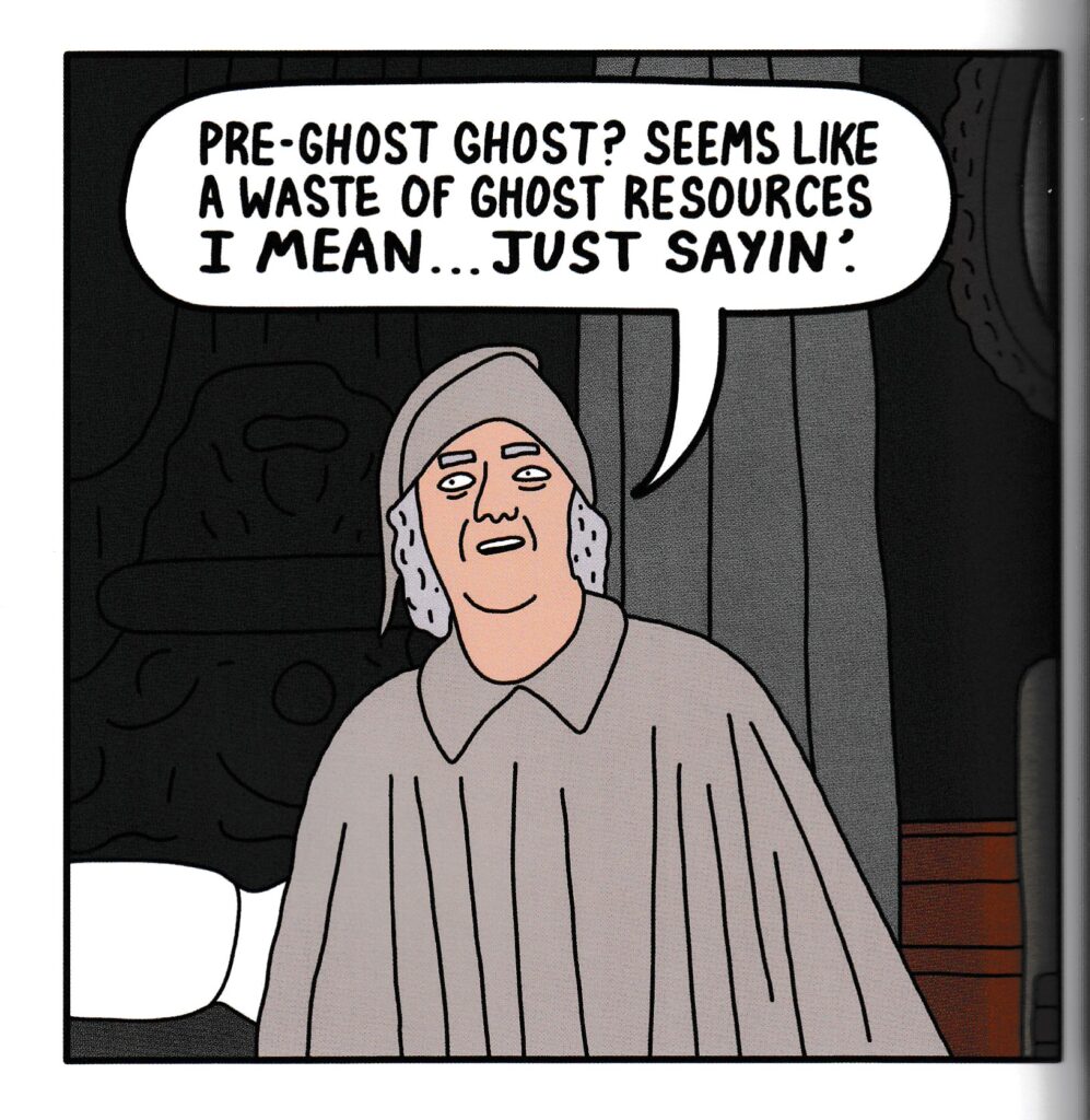 I apologize for this being a few days late to be considered an actual Christmas review, but you know how life gets around the holidays. And hey, at least I’m getting this out during the weird holiday taint week. Can the holidays be funny, was the question I asked myself after seeing this arrive in the mail. Normally I’d think that the subject has been satirized to death by now, but then again I’d never seen Brandon take a crack at it. This one starts off with a Christmas song (with lyrics), so gather the family around the fire and give it a go! Next we get a mysterious tale of a secret Santa who keeps sending a single egg to their chosen person throughout the holidays, until we get the dramatic reveal at the end. Next we see the moments where the Home Alone bandits question their life choices before going into that McCallister house and have time to briefly ponder what might have been. I’m not even going to tell you what the next two stories are about (other than to tell you that Rudolph is a human this time around and Santana shows up for the holiday), because I believe in surprises for Christmas. Oh, and Meat Santa to wrap things up, another unopened present for you. Still, the bulk of this book is a Christmas Carol parody. You may think, like I did, that parodying that particular story has been done to death and that there’s no hidden sources of humor left in it. Again, you haven’t seen Brandon’s take yet. Scrooge has never been humbuggier, Tiny Tim has never been tinier, the ghosts have never been more downsized, and the true effects of Scrooge’s change of heart on a larger scale have never been more clearly and depressingly explained. Brandon’s single panel per page style makes using a sample image tricky for me (oh, the troubles I have), but he asks the important questions, so I had to include the question that’s been bothering historians for over a century. This one is packed full of funny bits and I couldn’t recommend it more highly, ESPECIALLY if you read it during the actual holiday season. $25