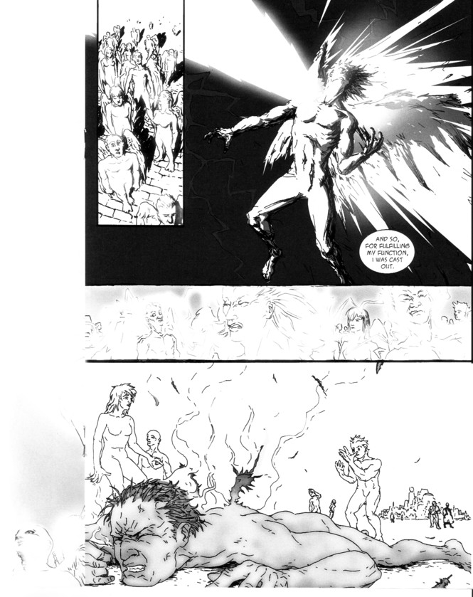 Let me just give you the tagline, so you don’t have to guess what that cover is trying to tell you: “Having spent the last 4 million years as an outcast, the devil has had enough! Tired of his role… he confesses all to a Priest”. That’s using the … thing to trim a quote up a bit, not to change the meaning. Blurb gatherers, take note! Anyway, the first thing this reminded me of was the Lucifer series from Vertigo. That’s fairly obvious, as they’re both about the devil, but they’re also both about the devil quitting, they just have different ideas about what the devil would do when he quit. The ending of this showed that this is an original story, but I’m not going to give it away or anything. The bulk of the story is with the devil talking to a priest, first trying to convince him that he is the devil, then trying to convince him that he (the devil) should kill himself. It’s an interesting theological debate, if a little bit basic. It’s a self-contained comic, so there’s no series here to keep up with. It has a Vertigo-ish feel to it, obviously. so if that’s your thing it’s an interesting comic. Here’s a website, they have a few comics there for you to look at, and it’s $4.50.