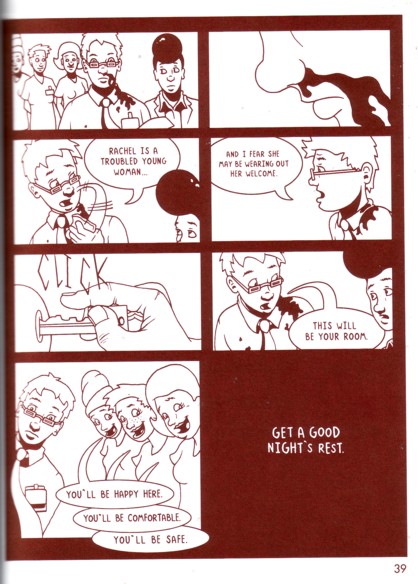 Does that cover looked smudged and crinkled to you? That’s what it looks like, I didn’t throw it down the steps or anything. I should also point out how great that is, that this book (even the spine) looks like it’s been read a hundred times and is about forty years old. In terms of layout and appearance this thing is a masterpiece. To the cover (and it’s possible that I love that too much but you can’t bring me down about that) to the inside to even the acknowledgements in the back, it’s hard for a graphic novel to look much better than this. The story is a harder thing to nail down, with a big cast of peripheral characters, some of whom you never figure out what their motivations things were. I can’t really go into it more than that without ruining the ending, but trust me on that. Not that that does a thing to affect the larger story, mind you. That’s about a young man who checks himself into a mental health facility after experiencing visions and another recent “graduate” of the same facility. The first man sees the world ending, over and over, with everything destroyed and people melting in front of him. The second man seems unable to let go of his past. Oh, and than there’s the incredibly creepy thing they both keep seeing, which seems to have something to do with the end of the world. It’s a good little mystery, although, oddly, I think this is one of those cases where he could have done with another 50 pages or so for character development. Which is probably one of the nicest things you can say about a book: that you wanted to spend more time with it. Oh, and it’s also really cheap at $6.99, so click on that website up there if you’re curious…